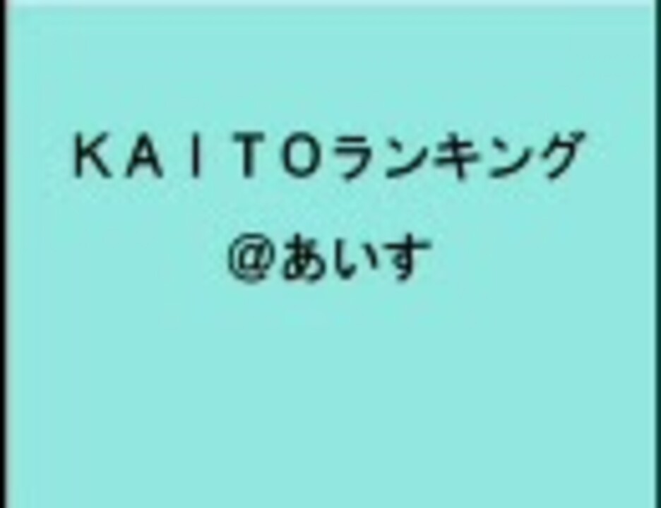 <b>KAITOでアイスなランキングです。</b><br />●アイス分は動画を見てチェックしました。●予想通りの激戦です。<br />●音量がバラバラです、すいません。●特に6位の音量が小さいのでご注意ください。<br />●PlayList:<a href="http://www7.atwiki.jp/v-ranking/pages/288.html" target="_blank" rel="noopener nofollow">http://www7.atwiki.jp/v-ranking/pages/288.html</a><br />●たくさん再生&コメント&マイリストありがとうございます。<br />●さりげなく一言が多かったですが、一言だけを除外しようとすると、ネタ的にアイスなのに一言しか言ってないものも除外になってしまうので、結局一言だけでも含めることにしました。<br />●KAITO新曲ランキング#23(<a href="https://www.nicovideo.jp/watch/sm3932606" class="watch">sm3932606</a>)、KAITOニュース20(<a href="https://www.nicovideo.jp/watch/sm3956206" class="watch">sm3956206</a>)で紹介していただきました、ありがとうございます。<br />●他にもランキング作りました(<a href="https://www.nicovideo.jp/mylist/9029225" target="_blank" rel="noopener">mylist/9029225</a>)