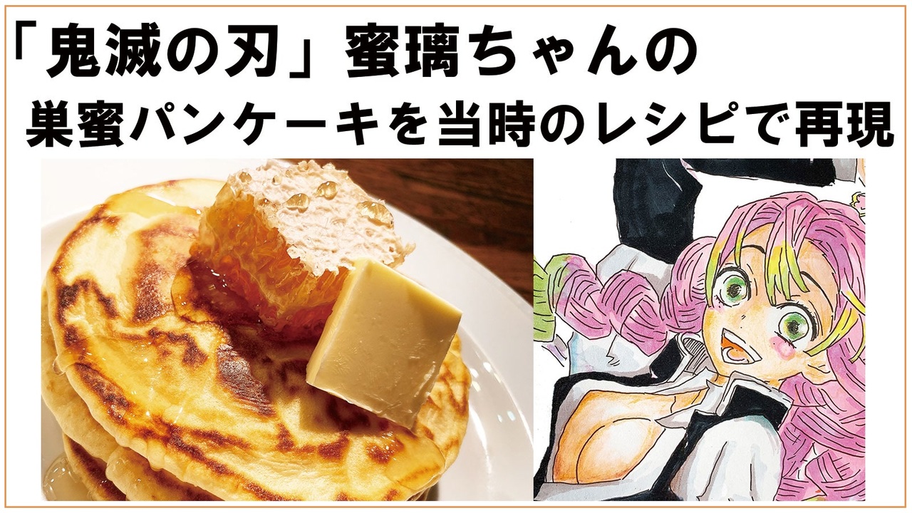 プロのシェフが漫画・アニメ・映画に出てくる料理やスイーツを再現する「ベルコルノの漫画飯」。<br>【漫画飯】リスト:<a href="https://www.nicovideo.jp/my/mylist/#/66008633" target="_blank" rel="noopener nofollow">https://www.nicovideo.jp/my/mylist/#/66008633</a><br><br>今回は大ヒット漫画「鬼滅の刃」原作15巻から、「恋柱」甘露寺蜜璃が、主人公の炭治郎にふるまった「巣蜜パンケーキ」を再現します。<br><br>単行本のビジュアルから、三段重ねのパンケーキに、大きくカットした巣蜜とバターを添えられたものと分かるのですが、そもそもパンケーキって、当時(大正時代)にあったの?という素朴な疑問から調べてみると・・・<br><br>日本には明治時代に「パンケーク」と紹介され、大正時代からデパートのメニューとして登場しているとのこと。<br><br>おぉ・・・あったんですね。。。<br><br>せっかくですから、当時の文献を調べて、大正時代のレシピで再現してみましょう!<br><br>明治時代の女性向け雑誌『常磐』の連載記事、「手軽西洋料理」をまとめたものが「常磐西洋料理(ボーカス・ディキンソン著/常盤社」。僕が見たものは大正元年のものでしたが、初版は明治37年。こちらに記載されている「パンケーク」を作ってみました。<br><br>レシピ的な特徴としては、やはりメレンゲを別立てした、いわゆる「スフレパンケーキ」のレシピであること。もう一つは生地自体には砂糖を全く使っておらず、添えられた糖蜜(蜂蜜)やジャミ(ジャム)の甘さで食べるレシピであることの2点かと思います。<br><br>ベーキングパオダー(ベーキングパウダー)も当時からあったんですね。勉強になりました。<br><br>巣蜜(甘露寺家では養蜂をやっているので巣蜜が手に入る)さえあれば、ホットケーキミックスを使わなくても、簡単に作ることができますし、大正ロマン、鬼滅の刃の世界に想いを馳せながら作って食べてみるのも素敵だと思います!<br><br>ごちそうさまでした!<br><br><br>ーーーーーーーーーーーーーーーーーーー<br>【 元ネタ紹介 】<br><br>作品:鬼滅の刃 原作:吾峠呼世晴先生 集英社