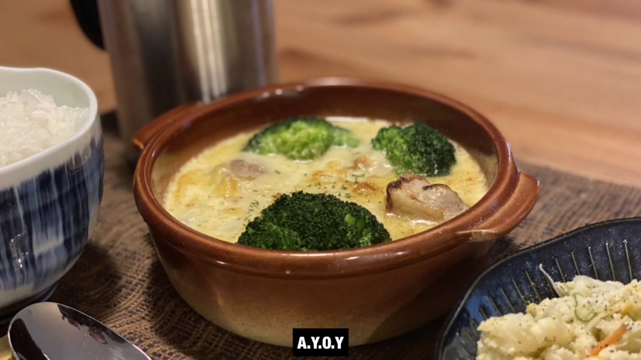 ・材料<br>鶏モモ肉 300g<br>バター 10g<br>生クリーム 100ml<br>白ワイン 50ml<br>ニンニク 2片<br>チーズ 好きなだけ<br>塩茹でしたブロッコリー 3つ<br>ブラックペッパー 適量<br><br>・手順<br>1. フライパンにバターを溶かして敷き、鶏モモの表面が狐色になるまで焼く<br><br>2. 鶏モモ肉の表面がカリカリになったら、生クリームと白ワインを投入。にんにくは擦り下ろしながら入れフライパンに蓋をし、弱火で5分ほど待つ。<br><br>3. 耐熱皿に必要量2. を盛り、塩茹でブロッコリーとチーズを盛り付け、オーブントースターで170℃10分。<br><br>4. 仕上げにブラックペッパーを振り、完成。<br><br><br>■レシピ本出しました<br>・Amazon<br><a href="https://www.amazon.co.jp/dp/4046047437" target="_blank" rel="noopener nofollow">https://www.amazon.co.jp/dp/4046047437</a><br><br>・KADOKAWA<br><a href="https://www.kadokawa.co.jp/product/321912000441/" target="_blank" rel="noopener nofollow">https://www.kadokawa.co.jp/product/321912000441/</a><br><br>■Twitterアカウントあります<br><a href="https://twitter.com/kuntotu" target="_blank" rel="noopener nofollow">https://twitter.com/kuntotu</a><br><br>■Instagramもあります<br><a href="https://www.instagram.com/kuntotu/" target="_blank" rel="noopener nofollow">https://www.instagram.com/kuntotu/</a><br><br>■サブチャンネル作りました<br>とっくんのサブチャンネル<br><a href="https://www.youtube.com/channel/UCsU6Xe6NyrTwid56M9nC9ww" target="_blank" rel="noopener nofollow">https://www.youtube.com/channel/UCsU6Xe6NyrTwid56M9nC9ww</a><br><br>■プレゼント、お手紙などの宛先はこちら<br>(※生物、冷蔵便は受け取りができません)<br>〒150-0031<br>東京都渋谷区桜丘町20-1 渋谷インフォスタワー17階<br>株式会社Kiii「とっくん」宛 <br><br>■お仕事の依頼等<br><a href="https://kiii.co.jp/contact/" target="_blank" rel="noopener nofollow">https://kiii.co.jp/contact/</a><br><br>概要欄をご覧いただきありがとうございます。<br>自分を大蛇丸と信じて止まない一般男性こと、とっくんと申します。<br>ただの一般男性です。色んな声真似をさせていただいてます。<br><br>知ってるネタ、面白かったネタがありましたら是非チャンネル登録の程、よろしくお願い申し上げます。
