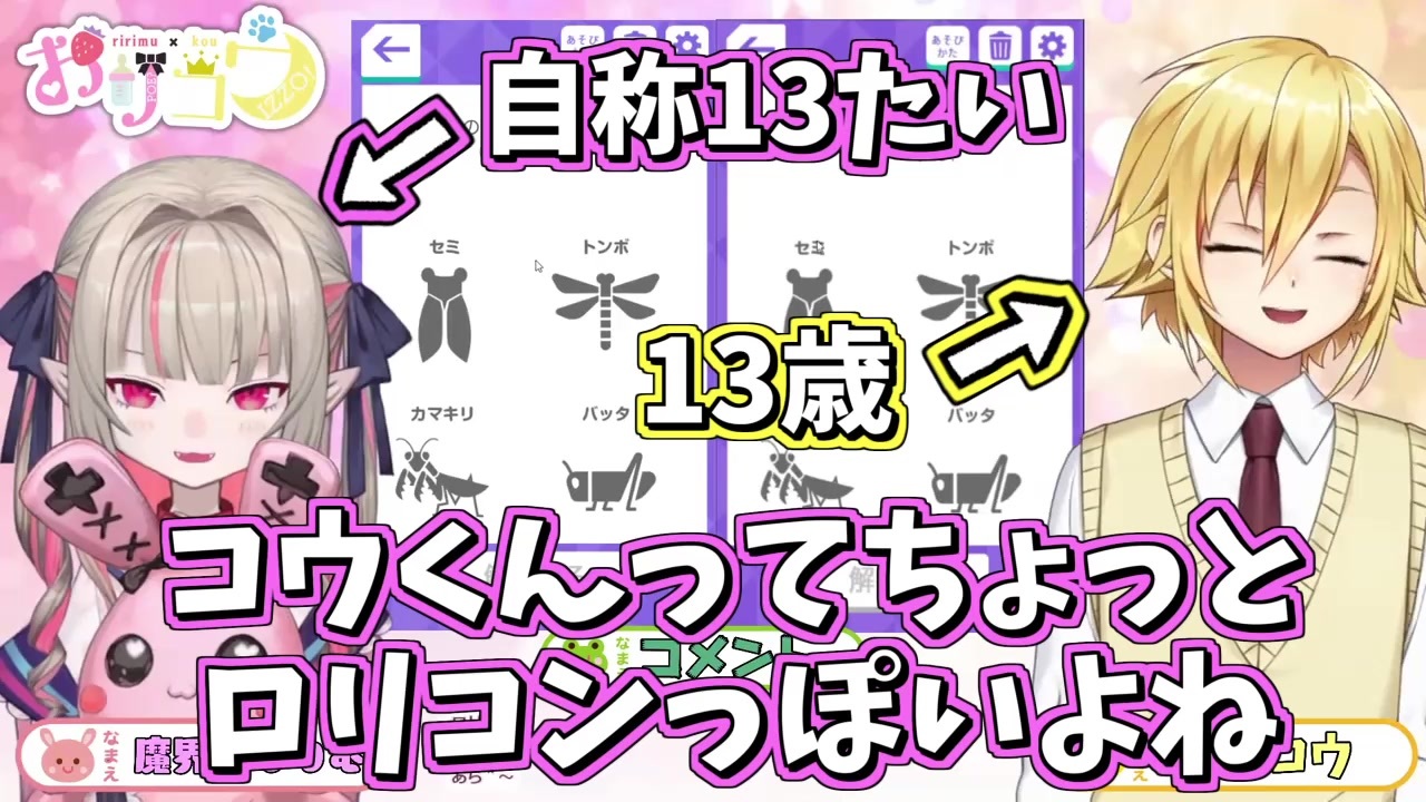 やっぱ少女性よ<br>心理テストはもちろん間に挟む雑談茶番の全てが面白くてほぼ笑ってた<br>ほぼ全部見どころみたいなもんだからまだ見てない人はアーカイブ見たほうが良い<br>あとコウがロリコンかどうかの話この後もう一回あるので<strong>アーカイブ見よう</strong><br>※普段りりむは10たいだけどこの衣装を着ているときは13たいらしい(本人談)<br><br>【元動画】<br>#おりコウ の恋愛事情【にじさんじ/魔界ノりりむ】<br><a href="https://youtu.be/J0Qhk3Rb1wg" target="_blank" rel="noopener nofollow">https://youtu.be/J0Qhk3Rb1wg</a><br><br>【二人のチャンネル】<br>魔界ノりりむ<br><a href="https://www.youtube.com/channel/UC9EjSJ8pvxtvPdxLOElv73w" target="_blank" rel="noopener nofollow">https://www.youtube.com/channel/UC9EjSJ8pvxtvPdxLOElv73w</a><br>卯月コウ<br><a href="https://www.youtube.com/channel/UC3lNFeJiTq6L3UWoz4g1e-A" target="_blank" rel="noopener nofollow">https://www.youtube.com/channel/UC3lNFeJiTq6L3UWoz4g1e-A</a><br><br><br><br><br>