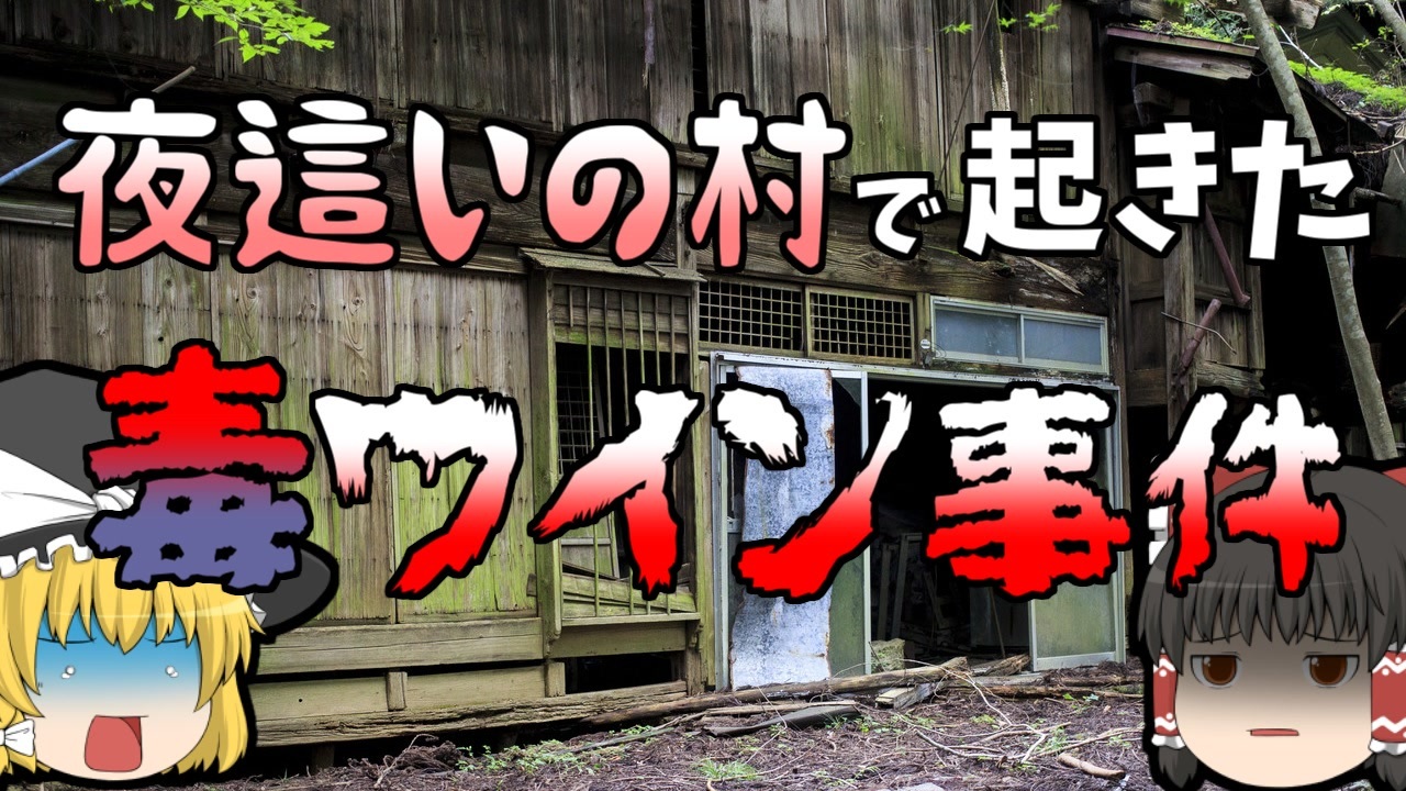 今回はリクエストがあった『名張毒ぶどう酒事件』の紹介です。<br>人口100人あまりの小さな村で起きた事件です。この事件で犯人とされた人物は、決定的な証拠もなく逮捕され、獄中で死亡しました。<br>この村には当時まだ夜這いの風習があったとされ、三角関係のもつれが動機だったとされています。<br>この事件の再審請求は現在でもまだ行われていて、冤罪説も多く存在しています。<br>映画、ドラマ、小説、ドキュメンタリーなどにもなっている事件なので、興味があったら是非見てみてください。<br><br>引用:出典:参考<br>東海テレビ<br><a href="https://ishort.ink/RQjL" target="_blank" rel="noopener nofollow">https://ishort.ink/RQjL</a><br>刑事弁護OASIS<br><a href="https://ishort.ink/oUnj" target="_blank" rel="noopener nofollow">https://ishort.ink/oUnj</a><br>FC2ブログ<br><a href="https://ishort.ink/1aBd" target="_blank" rel="noopener nofollow">https://ishort.ink/1aBd</a><br><br><a href="https://ishort.ink/1aBd" target="_blank" rel="noopener nofollow">https://ishort.ink/1aBd</a><br />※この動画は過去の事件を知り、現在でも同じことが発生する危険性を再認識、関与しないように促すための動画であり、視聴者を扇動、動揺を誘うためのコンテンツではありません。<br><br>ご要望にお応えして、メンバーシップの開設を行いました。<br>下記URLからも登録可能ですので、ご興味がある方は是非ご参加ください。<br><a href="https://www.youtube.com/channel/UCcT5a1J7XJW7CLYI2RKl4pw/join" target="_blank" rel="noopener nofollow">https://www.youtube.com/channel/UCcT5a1J7XJW7CLYI2RKl4pw/join</a><br><br><br>Twitter<br>→<a href="https://twitter.com/yukkurisurutoko" target="_blank" rel="noopener nofollow">https://twitter.com/yukkurisurutoko</a><br><br>取り急ぎ、簡易的にですがマイリストを作りました。<br>【ゆっくり解説】事故・事件関係紹介リスト <br><a href="https://www.nicovideo.jp/mylist/71034319" target="_blank" rel="noopener nofollow">https://www.nicovideo.jp/mylist/71034319</a><br>【ゆっくり解説】放射線系事故<br><a href="https://www.nicovideo.jp/mylist/71034368" target="_blank" rel="noopener nofollow">https://www.nicovideo.jp/mylist/71034368</a><br>【ゆっくり解説】鉄道系事故・事件関連<br><a href="https://www.nicovideo.jp/mylist/71034379" target="_blank" rel="noopener nofollow">https://www.nicovideo.jp/mylist/71034379</a>