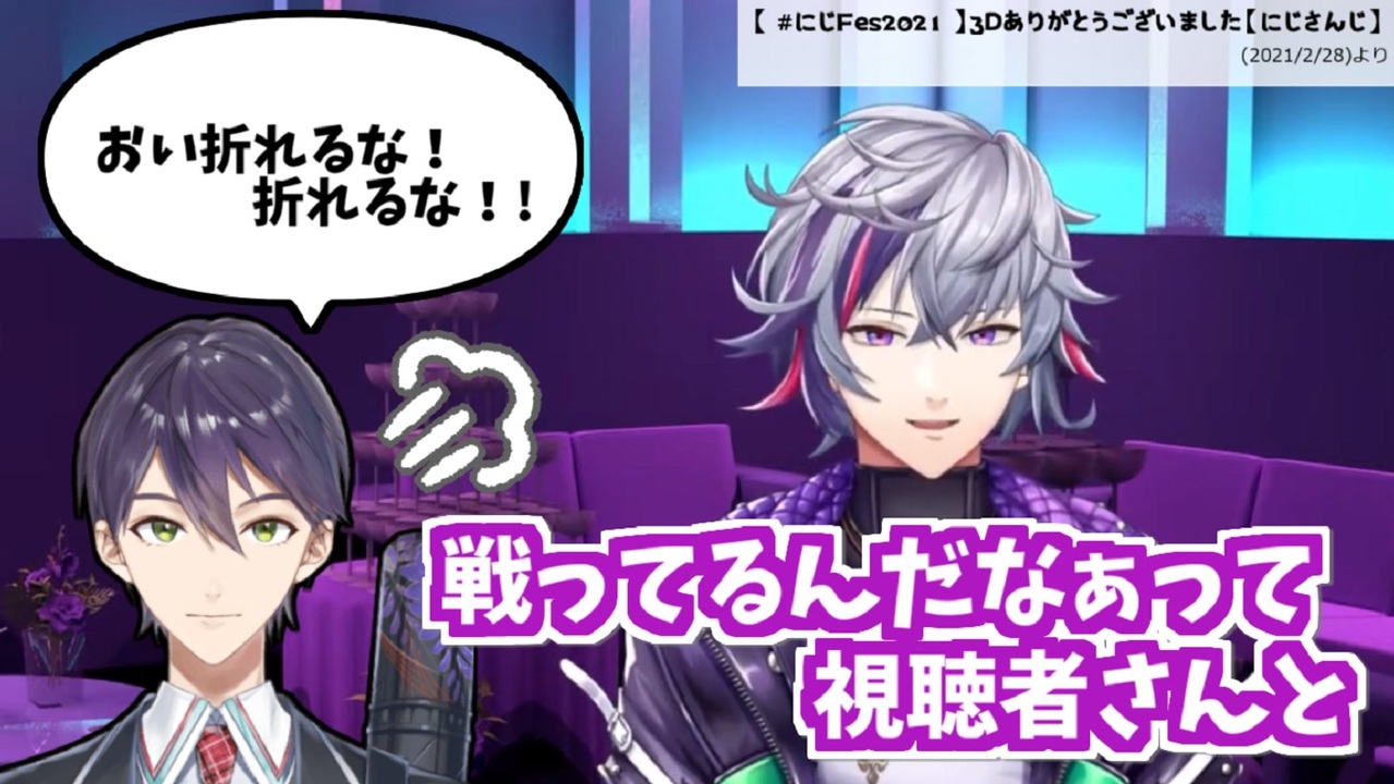 2人のステージ良かったですね<br>・不破湊<br><a href="https://www.youtube.com/channel/UC6wvdADTJ88OfIbJYIpAaDA?sub_confirmation=1" target="_blank" rel="noopener nofollow">https://www.youtube.com/channel/UC6wvdADTJ88OfIbJYIpAaDA?sub_confirmation=1</a><br>・剣持刀也<br><a href="https://www.youtube.com/channel/UCv1fFr156jc65EMiLbaLImw?sub_confirmation=1" target="_blank" rel="noopener nofollow">https://www.youtube.com/channel/UCv1fFr156jc65EMiLbaLImw?sub_confirmation=1</a><br><br>▼元動画<br>【 にじFes2021 】3Dありがとうございました【にじさんじ】(2021/2/28)<br><a href="https://www.youtube.com/watch?v=ziYfFoTQPNc" target="_blank" rel="noopener nofollow">https://www.youtube.com/watch?v=ziYfFoTQPNc</a><br>該当箇所(50:48~)<br><a href="https://youtu.be/ziYfFoTQPNc?t=3048" target="_blank" rel="noopener nofollow">https://youtu.be/ziYfFoTQPNc?t=3048</a><br><br>前夜祭とにじFesを生き抜いた伝説の傭兵、剣持刀也(2021/3/2)<br><a href="https://www.youtube.com/watch?v=G0DRPWWADzM" target="_blank" rel="noopener nofollow">https://www.youtube.com/watch?v=G0DRPWWADzM</a><br>該当箇所(59:02~)<br><a href="https://youtu.be/G0DRPWWADzM?t=3542" target="_blank" rel="noopener nofollow">https://youtu.be/G0DRPWWADzM?t=3542</a><br><br><br>▼VACHSSステージ ネットチケット発売中!<br>にじFes2021 VACHSSステージ(2021/2/28)<br><a href="https://live2.nicovideo.jp/watch/lv330236076" target="_blank" rel="noopener nofollow">https://live2.nicovideo.jp/watch/lv330236076</a><br>