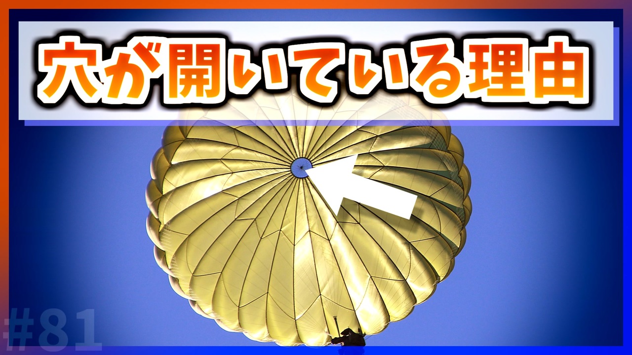 今日の豆知識は「パラシュートに穴が空いている理由」です。<br>穴が空いていたら、空気が逃げてしまって落下してしまうと思うかもしれませんが、実はこの穴にはとても大切な役割があるんです。<br><br><span style="font-size: 16px;"><strong>「いいね!」に追加の豆知識書いてます。</strong></span><br><br>今日の豆知識シリーズでは、毎日、様々なジャンルの豆知識を紹介していきます。<br>このシリーズは音声のみで、ラジオ感覚で聞くこともできます。<br>基本毎日投稿です!<br><br>コメントやいいね、マイリストなどしていただけるとモチベにつながるのでよければお願いします。<br><br>前【<a href="https://www.nicovideo.jp/watch/sm38360537" class="watch">sm38360537</a>】<br>次【<a href="https://www.nicovideo.jp/watch/sm38366037" class="watch">sm38366037</a>】<br><br /><br><span style="font-size: 16px;"><strong>各シリーズPart1リンク</strong></span><br>【海外の気になるQ&A】<br><a href="https://www.nicovideo.jp/watch/sm42996236" class="watch">sm42996236</a><br>【今日の豆知識】<br><a href="https://www.nicovideo.jp/watch/sm38740531" class="watch">sm38740531</a><br>【テクノロジーの歴史】<br><a href="https://www.nicovideo.jp/watch/sm37218295" class="watch">sm37218295</a><br><br>▶ Youtube<br><a href="https://www.youtube.com/channel/UCgb_Wn-ZUdVM3MTLiVHhcXQ?sub_confirmation=1" target="_blank" rel="noopener nofollow">https://www.youtube.com/channel/UCgb_Wn-ZUdVM3MTLiVHhcXQ?sub_confirmation=1</a><br>▶ Twitter<br><a href="https://twitter.com/RayKemo" target="_blank" rel="noopener nofollow">https://twitter.com/RayKemo</a>