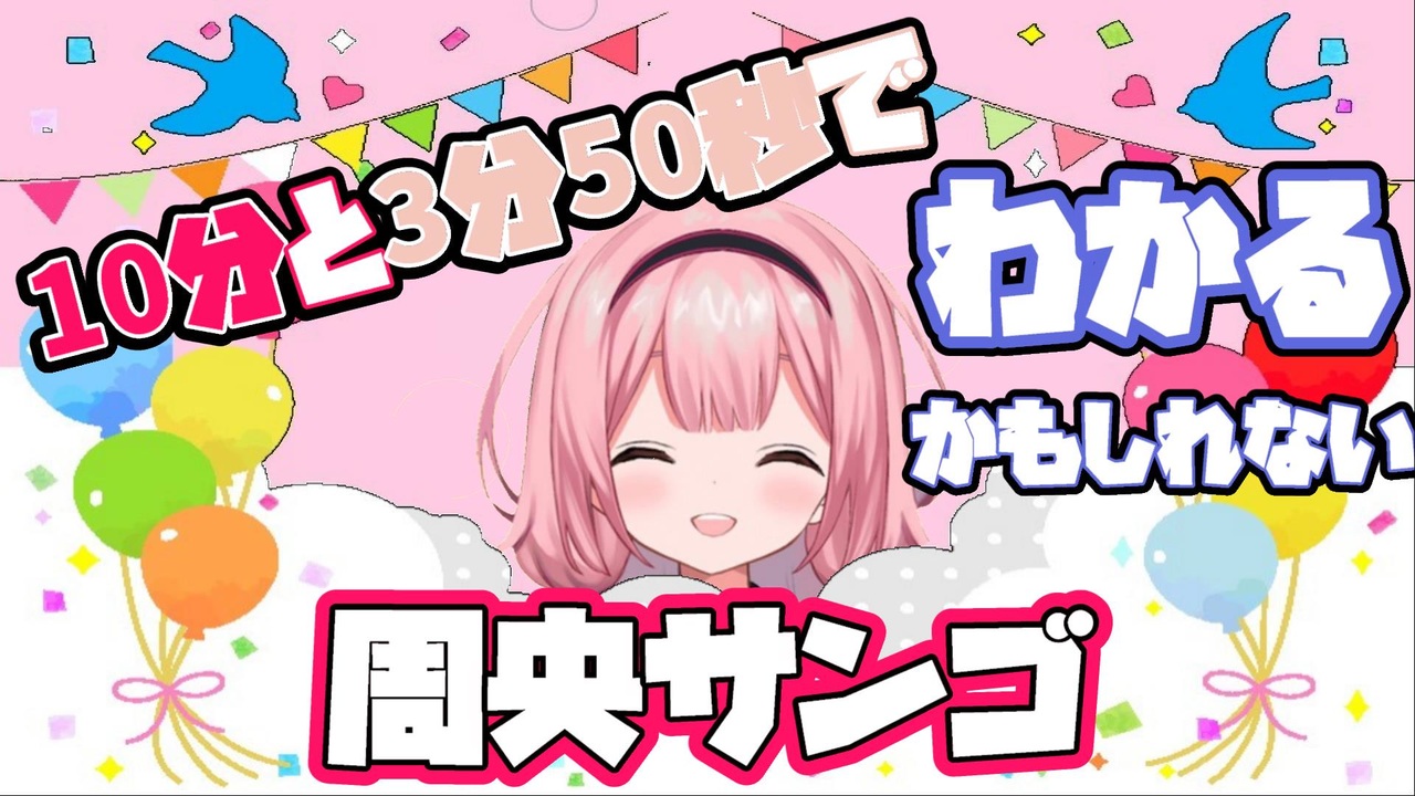 ◆誕生日記念枠◆<br>【誕生日歌枠】知ってる曲何曲ある?【周央サンゴ】<br><a href="https://youtu.be/N6VsRZMk2no" target="_blank" rel="noopener nofollow">https://youtu.be/N6VsRZMk2no</a><br>【ASMR】初!バイノーラルな台詞読み!【周央サンゴ】<br><a href="https://youtu.be/WZPXCBKQvak" target="_blank" rel="noopener nofollow">https://youtu.be/WZPXCBKQvak</a><br><br><br><br>10:52~11:37<br>誤:【世界のアソビ大全51】おれチャイニーズチェッカーちょうつよいよ【周央サンゴ】<br>正:【初配信】周央サンゴだよん がんばる【にじさんじ】<br>(コメントにて教えてくださった方ありがとうございます!)<br><br>◆使用アーカイブ◆ YouTubeの再生リストにまとめました<br><a href="https://www.youtube.com/playlist?list=PLtK0H-rXSXgU-SjMBKRX_nDH1JJO-ivO1" target="_blank" rel="noopener nofollow">https://www.youtube.com/playlist?list=PLtK0H-rXSXgU-SjMBKRX_nDH1JJO-ivO1</a><br>◆ンゴのおすすめ◆ こちらも是非<br><a href="https://www.youtube.com/watch?v=6LgNODEjenk&list=PLPn_ydpuhps5oSNxS-8ojJUKcwINl2_0l" target="_blank" rel="noopener nofollow">https://www.youtube.com/watch?v=6LgNODEjenk&list=PLPn_ydpuhps5oSNxS-8ojJUKcwINl2_0l</a><br><br>◆チャンネル◆<br>周央 サンゴ / Suo Sango【にじさんじ】<br><a href="https://www.youtube.com/channel/UCL_O_HXgLJx3Auteer0n0pA?sub_confirmation=1" target="_blank" rel="noopener nofollow">https://www.youtube.com/channel/UCL_O_HXgLJx3Auteer0n0pA?sub_confirmation=1</a>