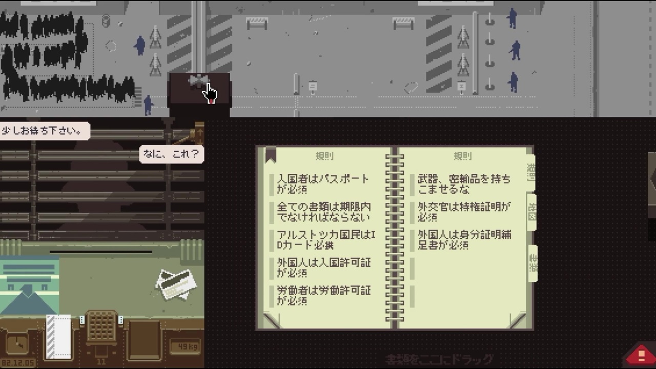 Papers, Pleaseをプレイ<br>公式サイト: <a href="https://papersplea.se/" target="_blank" rel="noopener nofollow">https://papersplea.se/</a><br><br><a href="https://www.nicovideo.jp/watch/sm38356910" class="watch">sm38356910</a>←前 次→<a href="https://www.nicovideo.jp/watch/sm38398068" class="watch">sm38398068</a><br>このシリーズとか <a href="https://www.nicovideo.jp/mylist/40533731" target="_blank" rel="noopener">mylist/40533731</a><br>シリーズpart1 <a href="https://www.nicovideo.jp/mylist/29516244" target="_blank" rel="noopener">mylist/29516244</a><br>youtube <a href="https://www.youtube.com/channel/UCojRF-b4D0R5JFZYa9iJfKw" target="_blank" rel="noopener nofollow">https://www.youtube.com/channel/UCojRF-b4D0R5JFZYa9iJfKw</a><br><br><br>