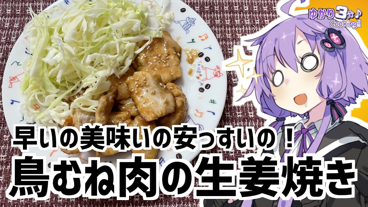 結月ゆかりを使用した料理動画です<br><br>鳥の胸肉で生姜焼きを作りました。生姜焼きのタレの万能さよ!<br><br>過去に紹介した生姜焼き:<a href="https://www.nicovideo.jp/watch/sm38001018" class="watch">sm38001018</a><br>前回のにんじんしりしり:<a href="https://www.nicovideo.jp/watch/sm38398404" class="watch">sm38398404</a><br><br>暗号の答えは『いいね!』を押せば分かるぞ!<br><br>らーめんの動画が10,000再生されてました!ありがとうございます!<br>10,000再生されていた自作らーめんの動画:<a href="https://www.nicovideo.jp/watch/sm37904635" class="watch">sm37904635</a><br><br><strong>オススメのボイロ劇場</strong><br>茜ちゃんと葵ちゃんの現代怪異占い:<a href="https://www.nicovideo.jp/watch/sm38263500" class="watch">sm38263500</a><br><br>ツイッター:<a href="https://twitter.com/mrt89244817" target="_blank" rel="noopener nofollow">https://twitter.com/mrt89244817</a>