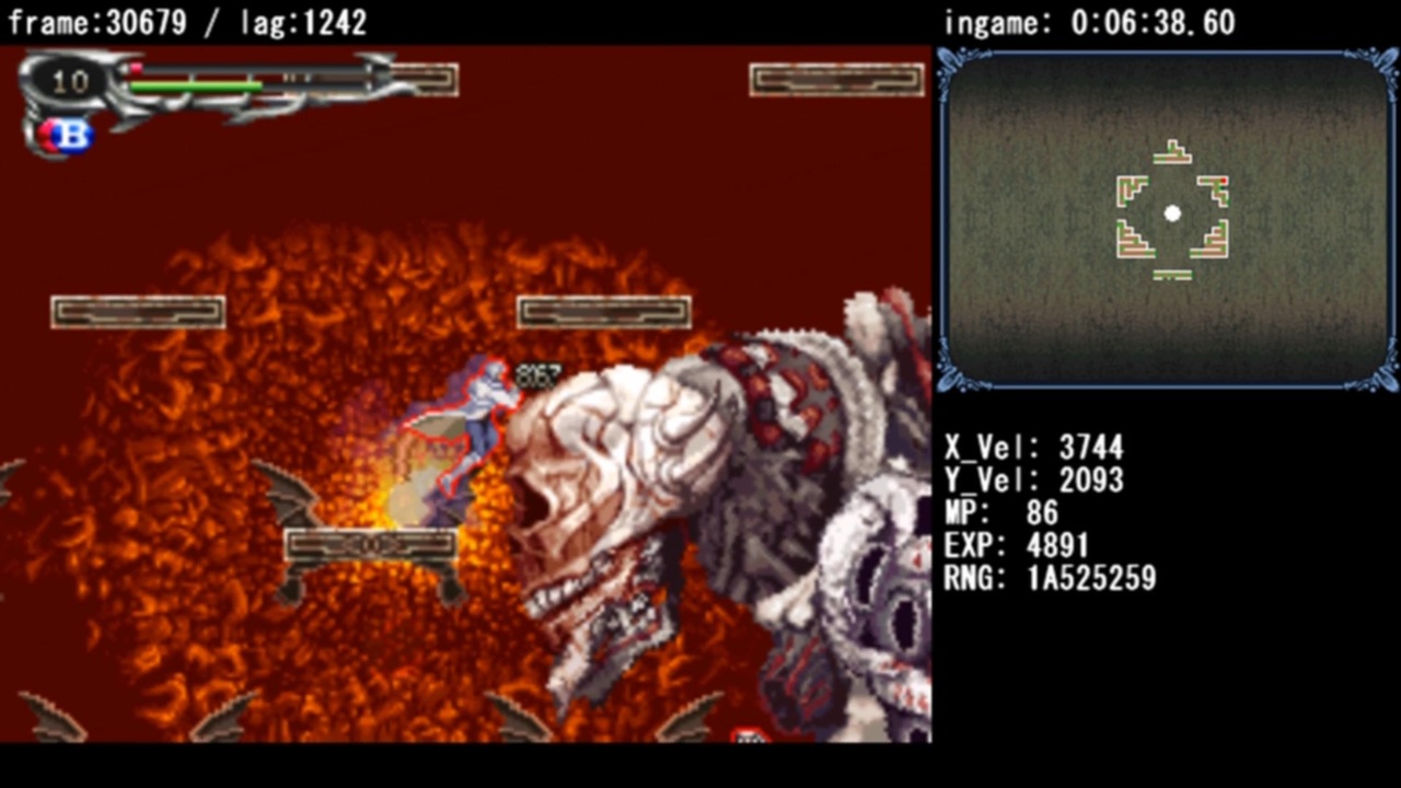 記録:34321フレーム (9分33秒68)<br>追記回数:11654回<br><br>踏破済みフラグのバグを利用したメモリ操作による利益を得ずにクリアするTASです。<br>厳密にはごく一瞬画面外に出ているのでメモリ操作は行われていますがこれによる利益は得ていません。<br><br>Any%TASとの主な違いは下記の通りです<br><br>・メナス(ラスボス)を撃破する必要がある<br>・上記によりHPとMPの回復手段を考慮する必要がある<br>・最適なレベルならびに効果的な武器,ソウルを考慮する必要がある<br><br>上記3点は今回のTASにおいて重要な要素となります<br><br>dsm→<a href="http://dehacked.2y.net/microstorage.php/info/616280769/mtbRc-CV-DoS-NMC-tas-b4.dsm" target="_blank" rel="noopener nofollow">http://dehacked.2y.net/microstorage.php/info/616280769/mtbRc-CV-DoS-NMC-tas-b4.dsm</a><br>うp主製作の試作TAS→<a href="https://www.nicovideo.jp/mylist/15158674" target="_blank" rel="noopener">mylist/15158674</a><br>