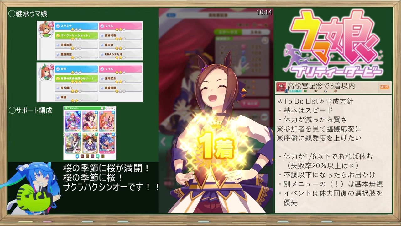 トレーナーID:530 912 477<br><br>P.S.サークル設立しました!よろしければどうぞ<br>⇒「劇団タンタラス」<br><br>バクシンバクシンバクシン!<br>バクシンシーン!<br><br>【GAME】 <br>ウマ娘プリティーダービー<br><br>【レギュレーション】<br>・使用キャラ:サクラバクシンオー<br>・計測区間:育成開始~登録画面まで<br>・ハード:PC(DMM版)<br>・マクロ等使用不可<br><br>■頭ハウディーチャート<br>≫<a href="https://www.nicovideo.jp/watch/sm38467455" class="watch">sm38467455</a><br><br>■ナウなヤングにバカウケチャート<br>≫<a href="https://www.nicovideo.jp/watch/sm38549133" class="watch">sm38549133</a><br><br>■マヤにむちゅ~チャート<br>≫<a href="https://www.nicovideo.jp/watch/sm38665263" class="watch">sm38665263</a><br><br>■頭120億チャート<br>≫<a href="https://www.nicovideo.jp/watch/sm38746229" class="watch">sm38746229</a><br><br>■大接戦どごーーーーーん!チャート<br>≫<a href="https://www.nicovideo.jp/watch/sm38849055" class="watch">sm38849055</a><br><br>■異世界に転生したようですがここでもグラス最強のようですチャート<br>≫<a href="https://www.nicovideo.jp/watch/sm39039084" class="watch">sm39039084</a><br><br>■アオハル杯キングと最強四天王チャート<br>≫<a href="https://www.nicovideo.jp/watch/sm39281100" class="watch">sm39281100</a><br><br>【ショータイムモード幻の三冠馬チャート】<br>≫<a href="https://www.nicovideo.jp/watch/sm39661459" class="watch">sm39661459</a><br><br>【クライマックス絶対王政皇帝チャート】<br>≫<a href="https://www.nicovideo.jp/watch/sm40200521" class="watch">sm40200521</a><br><br>【ウマ娘RTAマイリス】<br>≫<a href="https://www.nicovideo.jp/mylist/70703632" target="_blank" rel="noopener">mylist/70703632</a><br><br>≪同時進行中≫Bullet Girls Phantasia RTA_3:16:45_Part.1<br>≫<a href="https://www.nicovideo.jp/watch/sm38304057" class="watch">sm38304057</a><br><br>Other Cielo’s Title <br>【<a href="https://www.nicovideo.jp/mylist/50418741" target="_blank" rel="noopener">mylist/50418741</a> 】<br><br>twitter <a href="https://twitter.com/Cielo_Polo" target="_blank" rel="noopener nofollow">https://twitter.com/Cielo_Polo</a><br>