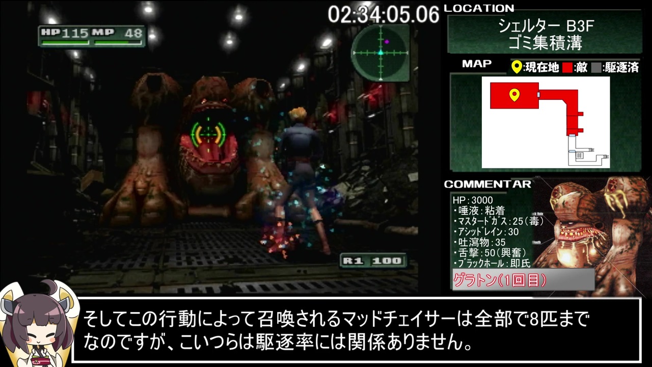 前回のガバ乙はたった一度の過ちであり、二度と同じ間違いはしません。<br>僕はガバ勢ではありません。これだけははっきりと真実を伝えたかった。<br><br>投稿遅れて申し訳ナス!<br><br>vsグラトン~ピアース救出イベント①前まで<br><br><a href="https://www.nicovideo.jp/watch/sm38369364" class="watch">sm38369364</a>←前|<a href="https://www.nicovideo.jp/mylist/70540439" target="_blank" rel="noopener">mylist/70540439</a>|次→<a href="https://www.nicovideo.jp/watch/sm38462623" class="watch">sm38462623</a><br><br>ミュータント解説でお借りしたでかきりたん→<a href="https://seiga.nicovideo.jp/seiga/im6478323" target="_blank" rel="noopener">im6478323</a><br /><br><strong><u>▼環境</u></strong><br>・PS2実機、連射機なし、高速読み込みなし<br><br><strong><u>▼レギュレーション</u></strong><br>・計測期間:「デッドリーモード」選択~ラスボスに最後の一撃を与えた瞬間<br>・難易度:デッドリーモード<br>・最終セーブポイントで「駆逐率100%」を確認する<br>・ジャベリンバグ使用禁止<br>・(最終的に駆逐率100%であれば)逃走可<br><br>お借りしたきりたん立ち絵→<a href="https://seiga.nicovideo.jp/seiga/im8645890" target="_blank" rel="noopener">im8645890</a><br><br>ついた→<a href="https://twitter.com/KemotooooN_RTA" target="_blank" rel="noopener nofollow">https://twitter.com/KemotooooN_RTA</a><br><br>広告者様紹介は最後にドバーッと行う予定です。