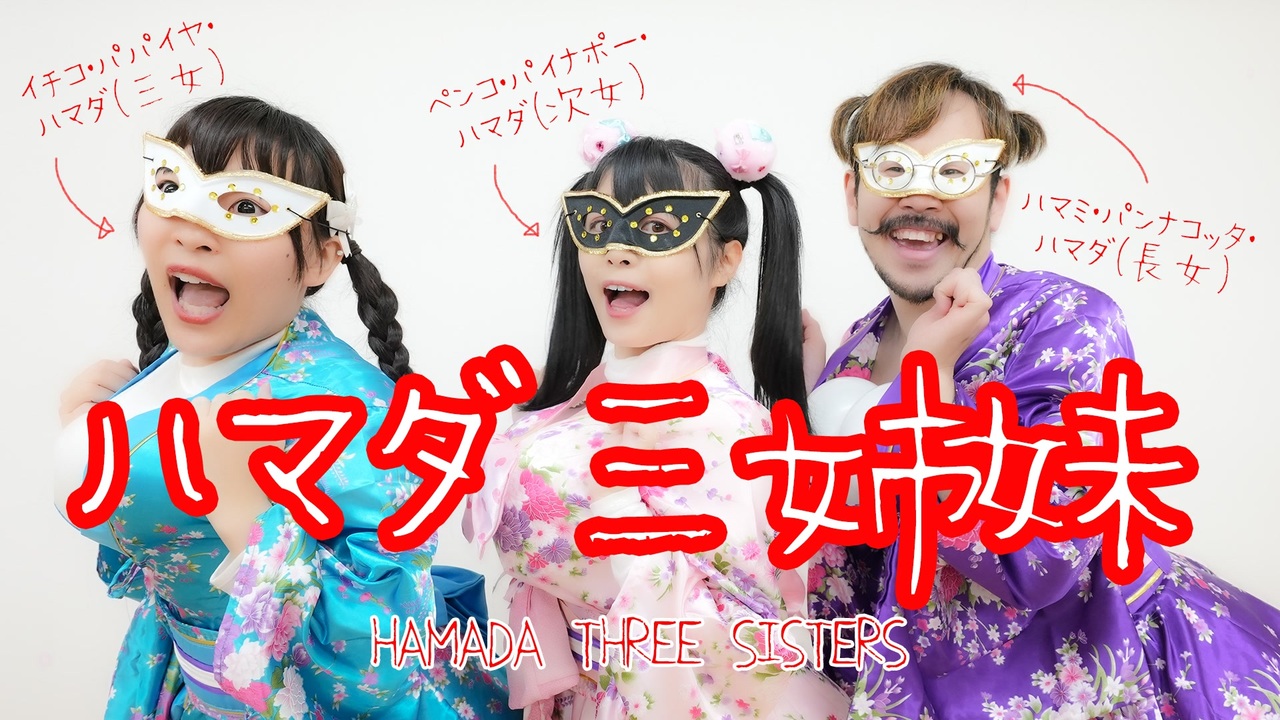 初めまして!令和に現れた謎の3人組、ハマダ三姉妹です!<br><br><br>果たして正体は何者なのか・・・・・・・・・・・・・・<br><br>長女(<span style="color: #9900ff;">紫</span>):ハマミ・パンナコッタ・ハマダ<br>マイリスト→<a href="https://www.nicovideo.jp/mylist/54076144" target="_blank" rel="noopener">mylist/54076144</a><br>Twitter→<a href="https://twitter.com/takahamaaada" target="_blank" rel="noopener nofollow">https://twitter.com/takahamaaada</a><br><br>次女(<span style="color: #e06666;">ピンク</span>):ペンコ・パイナポー・ハマダ<br>マイリスト→<a href="https://www.nicovideo.jp/mylist/22912938" target="_blank" rel="noopener">mylist/22912938</a><br>コミュ→co1358080<br>HP→ <a href="https://drpc.main.jp/penta/" target="_blank" rel="noopener nofollow">https://drpc.main.jp/penta/</a><br>Twitter→ <a href="https://twitter.com/Asibuto_Penta" target="_blank" rel="noopener nofollow">https://twitter.com/Asibuto_Penta</a><br><br>三女(<span style="color: #6fa8dc;">水色</span>):イチコ・パパイヤ・ハマダ<br>マイリスト→<a href="https://www.nicovideo.jp/mylist/35474738" target="_blank" rel="noopener">mylist/35474738</a><br>Twitter→<a href="https://twitter.com/I_C_K_W" target="_blank" rel="noopener nofollow">https://twitter.com/I_C_K_W</a><br><br>応援よろしくお願いします!♡