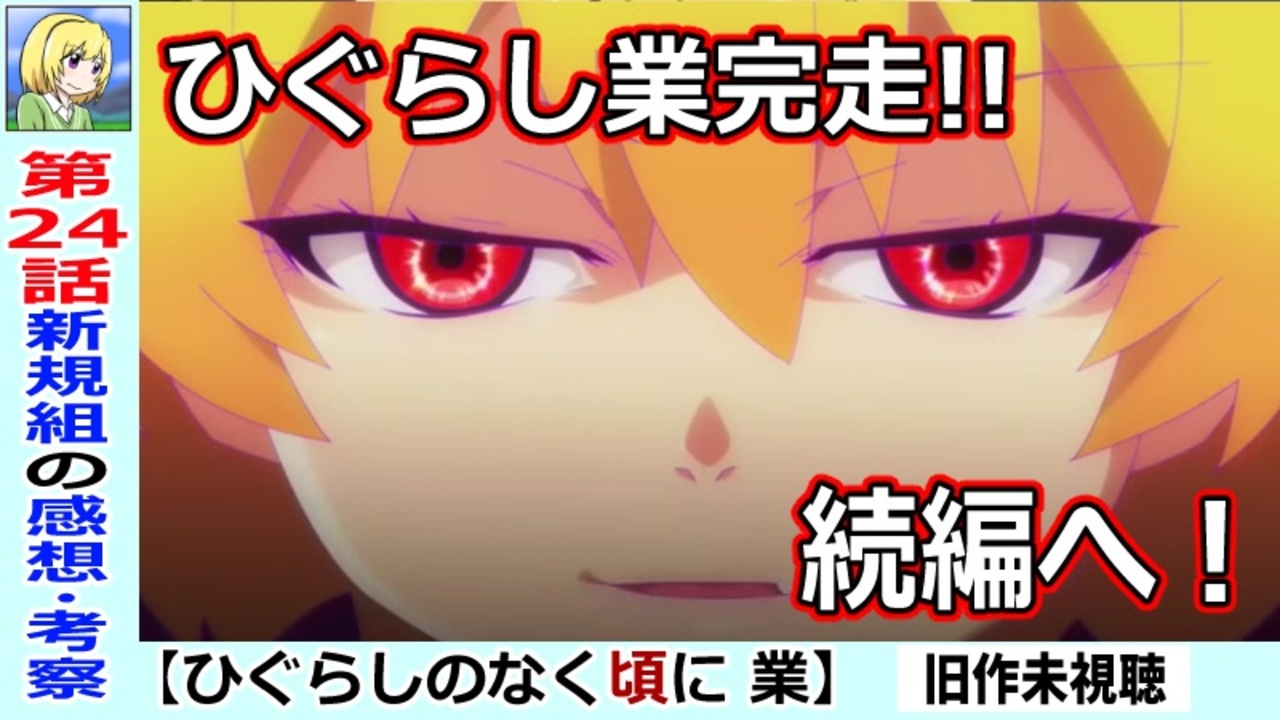 <<<コメントの際の注意事項>>><br>毎週のアニメのみを辿って感想・考察を出していきたいと思います。<br>新規視聴者さんのためにもネタバレコメントはご遠慮ください。<br>旧作を用いた描写比較、設定解説、出ていない用語の使用、注目点の示唆なども同様です。<br>アニメ業視聴後に、新規ファンが旧作を楽しむ余地を残してあげておいてください^^<br><br><<コンセプト>><br>ネタバレが苦手な人でも楽しめる動画を目指しています!<br>皆さんの感想などもお聞かせいただけると嬉しいです!<br>新アニメとしての新規視点での考察なども歓迎です!<br><br>一緒に追いかけながらアニメを楽しみましょう!<br>↓【Youtubeでチャンネル登録】次回もニコニコで動画を出せるとは限りません<br><a href="https://www.youtube.com/channel/UC3i6fY7gwjIo8HJo7G_N4mA?sub_confirmation=1" target="_blank" rel="noopener nofollow">https://www.youtube.com/channel/UC3i6fY7gwjIo8HJo7G_N4mA?sub_confirmation=1</a><br><br>【ツイッター】告知や面白いものの共有用<br><a href="https://twitter.com/toori0303" target="_blank" rel="noopener nofollow">https://twitter.com/toori0303</a><br>【pixiv】動画用に描いた絵や漫画のまとめ等<br><a href="https://www.pixiv.net/users/9142671" target="_blank" rel="noopener nofollow">https://www.pixiv.net/users/9142671</a><br>【欲しい物リスト】送って頂いた原作書籍はアニメに絡めて動画を出せたらと思っています。<br><a href="https://www.amazon.jp/hz/wishlist/ls/2KZ6H6K2WSG4Z?ref_=wl_share" target="_blank" rel="noopener nofollow">https://www.amazon.jp/hz/wishlist/ls/2KZ6H6K2WSG4Z?ref_=wl_share</a><br>【質問箱】匿名で質問したいという方へ<br><a href="https://marshmallow-qa.com/toori0303" target="_blank" rel="noopener nofollow">https://marshmallow-qa.com/toori0303</a><br>【ブログ】アニメを見て動画作成用に使った情報をまとめています<br><a href="http://tooltoyama.livedoor.blog/" target="_blank" rel="noopener nofollow">http://tooltoyama.livedoor.blog/</a><br><br><br>公式HP<br><a href="https://higurashianime.com/" target="_blank" rel="noopener nofollow">https://higurashianime.com/</a><br>