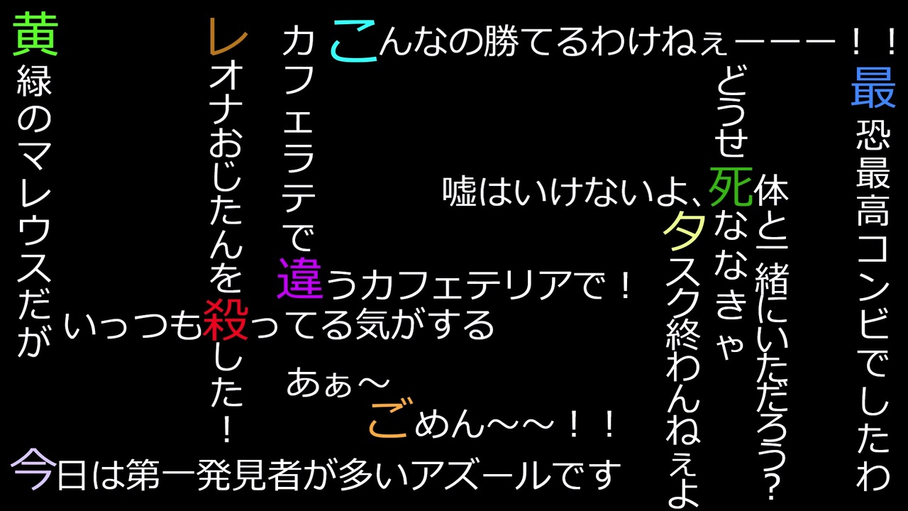 「<span style="color: #4a86e8;">罪悪感と闘いながらオレ、めっちゃ頭使ったんだけど!!</span>」<br><br>主催、そらさんによる『寮長+αの宇宙人狼』に参加した際のフロイド視点の疑似実況動画。<br>こちらの動画(<a href="https://www.nicovideo.jp/watch/sm38399332" class="watch">sm38399332</a>)のフロイド視点を動画化しました。<br>滅茶苦茶頭使って行動してました、これ以上の試合はない!<span style="color: #999999; font-size: 10px;">と思ってたのになぁ・・・</span><br><br>中身がポンコツだからフロイドもポンコツ・・・。大丈夫、ウツボ怖クナイヨー?<br>タグ等は必要そうなものしか付けていないので、追加等していただいて大丈夫です。<br>また、前回の動画が銀枠頂いていました。<br>広告やフォロー、マイリス登録ありがとうございます。<br>次回作は人数増えるので気合い入れて作ります。(作ろうと思ってる片方長いから前後編で分けるかも・・・。)<br><br><strong><u>・あてんしょん・</u></strong><br>・唐突に草生やしたり、喋ってるメンバーが偏ってたりしてますがほぼ録音通りです。<br>・動画内にも注意喚起してありますが<u>リプレイ動画</u>のため<span style="color: #ff0000;"><u>キャラ崩壊</u></span>等あります。<br>・不快なコメントはNG登録へ、視聴後の誹謗中傷はご遠慮いただきますようお願いします。<br>・動画視聴中に「合わない」と感じられた方は速やかにブラウザバックをお願いいたします。<br>・する人はいないと思いますが転載は禁止<br>ルールとマナーを守って良きニコニコライフをお送りください。<br><br><br><br>【参加者紹介】※敬称略<br>・リドル:磨白(<a href="https://www.nicovideo.jp/user/3112844" target="_blank" rel="noopener">user/3112844</a>)<br>・レオナ:ゆんゆい<br>・アズール:たまゆら(<a href="https://www.nicovideo.jp/user/61096105" target="_blank" rel="noopener">user/61096105</a>)<br>・カリム:遊然(<a href="https://www.nicovideo.jp/user/93659601" target="_blank" rel="noopener">user/93659601</a>)<br>・ヴィル:そら(<a href="https://www.nicovideo.jp/user/32914152" target="_blank" rel="noopener">user/32914152</a>)<br>・イデア:黒音(<a href="https://www.nicovideo.jp/user/92754236" target="_blank" rel="noopener">user/92754236</a>)<br>・マレウス:みゃー太(<a href="https://www.nicovideo.jp/user/39440942" target="_blank" rel="noopener">user/39440942</a>)<br>・チェカ:すいか丸<br>・ルーク:yuki(<a href="https://www.nicovideo.jp/user/15223165" target="_blank" rel="noopener">user/15223165</a>)<br>・フロイド:時任(投稿者:Twitter→@tokitou4112)<br><br><a href="https://www.nicovideo.jp/watch/sm38383870" class="watch">sm38383870</a>←前回 次回→鋭意製作中<br><br>そらさんの実況動画→<a href="https://www.nicovideo.jp/watch/sm37901581" class="watch">sm37901581</a>