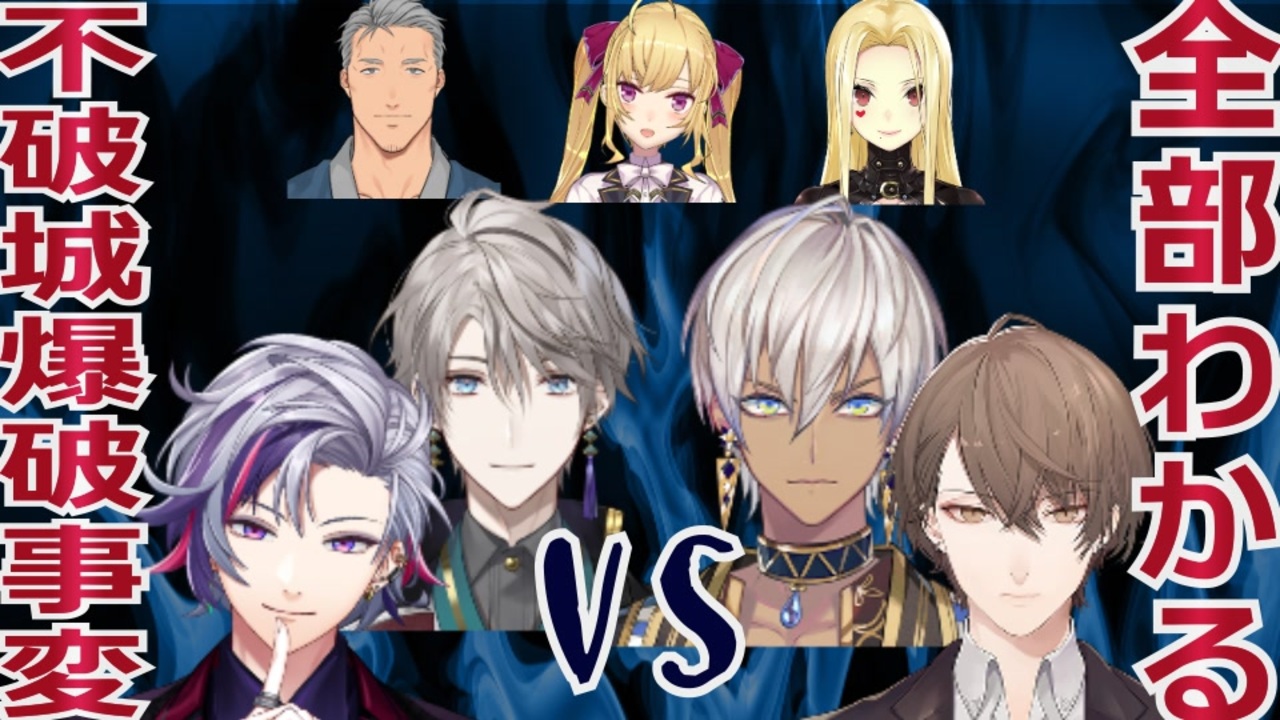 スピード重視で作ったから、補足訂正はコメントでやるか配信みて<br>不破城爆破事変ってのは自分が勝手に考えたやつね。誤字多くてすまんね<br><br>※ルイスひとり勝ち編 → <a href="https://www.nicovideo.jp/watch/sm38527248" class="watch">sm38527248</a> ※<br><br>↓引用元本編↓<br>【イブラヒム】<br><a href="https://youtu.be/BwgOq9tmQak" target="_blank" rel="noopener nofollow">https://youtu.be/BwgOq9tmQak</a><br>【甲斐田晴】<br><a href="https://youtu.be/pozgfDixctY" target="_blank" rel="noopener nofollow">https://youtu.be/pozgfDixctY</a><br>【加賀美ハヤト】<br><a href="https://youtu.be/AHkK7NcRsdY" target="_blank" rel="noopener nofollow">https://youtu.be/AHkK7NcRsdY</a><br>【鷹宮リオン】<br><a href="https://youtu.be/fc480hnkJ6A" target="_blank" rel="noopener nofollow">https://youtu.be/fc480hnkJ6A</a><br>【不破湊】<br><a href="https://youtu.be/KK70swNc2RQ" target="_blank" rel="noopener nofollow">https://youtu.be/KK70swNc2RQ</a><br>【舞元啓介】<br><a href="https://youtu.be/bTToEupINPk" target="_blank" rel="noopener nofollow">https://youtu.be/bTToEupINPk</a><br>【ルイス・キャミー】<br><a href="https://youtu.be/vGP3twXK5e0" target="_blank" rel="noopener nofollow">https://youtu.be/vGP3twXK5e0</a><br><br>※シェリンは配信外<br>※数が多いので配信URLのみの記載になります<br>
