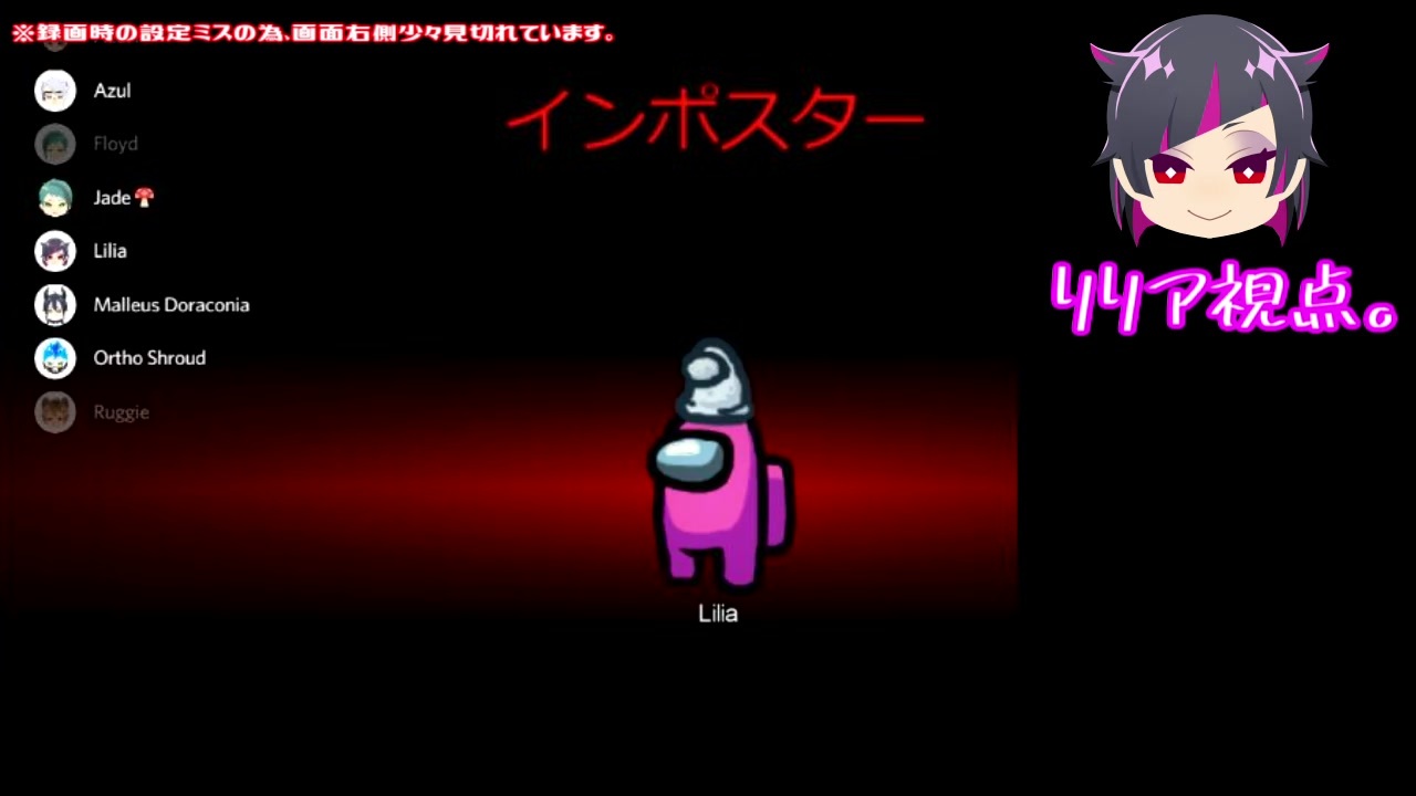TWST Among US 偽実況動画。<br>※転載禁止。<br><br>カウ様(<a href="https://www.nicovideo.jp/user/117321087" target="_blank" rel="noopener">user/117321087</a>)主催の宇宙人狼会に参加させていただきました~!<br>皆さまとっても優しく歓迎してくださり、楽しく遊ぶことができました。<br>本当にありがとうございます~~~~!<br><br>今回はインポスター編!次回はクルー編をお届け予定です。<br>楽しんでご視聴いただけますことを願っております。<br>一戦目と三戦目の画面がおかしいのは、録画時のこちらの設定ミスです。申し訳ございません…<br>リリアちゃんの可憐なアイコンにどうか誤魔化されてください…!(土下座)<br><br>同日別試合マレウス視点→[<a href="https://www.nicovideo.jp/watch/sm38485759" class="watch">sm38485759</a>]<br><br>【追加注意事項】<br>※中の人<br>※ゲーム知識未熟<br>※キャラ崩壊<br>※キャラ崩壊<br>※キャラ崩壊<br>※キャラ大崩壊<br>動画内の注意事項に加えて上記の注意事項を読んだ上でご視聴ください。<br>視聴後の誹謗中傷等は一切受け付けられません。<br>ルールとマナーを守って楽しんでご覧いただければ幸いです!<br><br>【参加メンバー紹介】※敬称略<br>・マレウス:カウ(<a href="https://www.nicovideo.jp/user/117321087" target="_blank" rel="noopener">user/117321087</a>)<br>・エース:メゴ<br>・ラギー:くじら(<a href="https://www.nicovideo.jp/user/116093335" target="_blank" rel="noopener">user/116093335</a>)<br>・アズール:しらたま(<a href="https://www.nicovideo.jp/user/99124431" target="_blank" rel="noopener">user/99124431</a>)<br>・ジェイド:エル<br>・フロイド:禄音<br>・ルーク:Nagi(<a href="https://www.nicovideo.jp/user/54595841" target="_blank" rel="noopener">user/54595841</a>)<br>・オルト:古鳥(<a href="https://www.nicovideo.jp/user/55363944" target="_blank" rel="noopener">user/55363944</a>)<br>・リリア:そら(投稿主:Twitter@sora_nico_side)<br><br>アイコン:なきめ様<br>背景・BGM等:ニコニ・コモンズ様<br><br>作ったものリスト →[<a href="https://www.nicovideo.jp/mylist/66855689" target="_blank" rel="noopener">mylist/66855689</a>]
