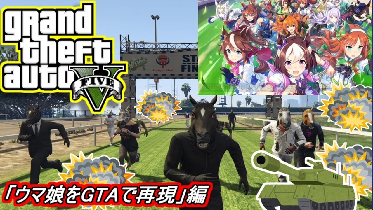 You Tube高画質版<br><a href="https://youtu.be/wOCNeQEr7EU" target="_blank" rel="noopener nofollow">https://youtu.be/wOCNeQEr7EU</a><br><br>YouTubeチャンネルも登録お願いします!<a href="https://www.youtube.com/channel/UCs_0n9y_qw6fAniS4mQ7q8w?sub_confirmation=1" target="_blank" rel="noopener nofollow">https://www.youtube.com/channel/UCs_0n9y_qw6fAniS4mQ7q8w?sub_confirmation=1</a><br>Twitter ご意見・感想いつでもお待ちしております!<br><a href="https://twitter.com/naoreisen" target="_blank" rel="noopener nofollow">https://twitter.com/naoreisen</a><br><br>巷で流行しているウマ娘!<br>GTAで動画にしたい!・・・・だが私はアニメはおろかゲームにも触れたことがない<br>・・・せや!自分で想像しながら再現すればいいんや!<br>(英訳:ファンの皆様本当に申し訳ございません<br><br>楽曲提供<br>ぺんぺんさん<br><a href="https://www.nicovideo.jp/user/93911302" target="_blank" rel="noopener nofollow">https://www.nicovideo.jp/user/93911302</a><br><br>撮影協力<br>生放送リスナー・GTAクルーメンバーの皆様<br>ゲスト:GUNSOUさん<br>今回も協力ありがとうございました!<br><br><br>手配度MAXシリーズ <a href="https://www.nicovideo.jp/mylist/18374381" target="_blank" rel="noopener">mylist/18374381</a> <br><br>次回 GTAオンライン 動物に変身してロスサントスで大暴れ!<br><a href="https://www.nicovideo.jp/watch/sm38677856" target="_blank" rel="noopener nofollow">https://www.nicovideo.jp/watch/sm38677856</a><br><br>前回 手配度MAXギンガマン<br><a href="https://www.nicovideo.jp/watch/sm38472216" target="_blank" rel="noopener nofollow">https://www.nicovideo.jp/watch/sm38472216</a><br><br>前回のカオスモード動画:カオスGTA5 サメ編<br><a href="https://www.nicovideo.jp/watch/sm37863236" target="_blank" rel="noopener nofollow">https://www.nicovideo.jp/watch/sm37863236</a><br><br>GTAクルー2 <a href="http://ja.socialclub.rockstargames.com/crew/bsaa-suwa2" target="_blank" rel="noopener nofollow">http://ja.socialclub.rockstargames.com/crew/bsaa-suwa2</a><br>生放送 co1486560<br>