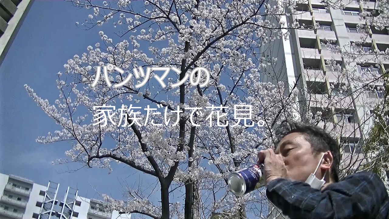 パンツマンの家族だけで花見。