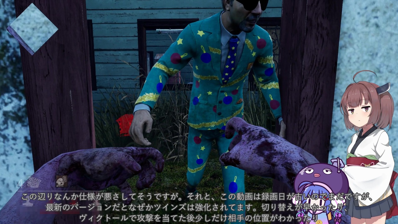 編集に3ヶ月かかりました<br><br><a href="https://www.nicovideo.jp/watch/sm38138153" class="watch">sm38138153</a>←前回 リスト <a href="https://www.nicovideo.jp/mylist/62705262" target="_blank" rel="noopener">mylist/62705262</a> 次回→<a href="https://www.nicovideo.jp/watch/sm38607801" class="watch">sm38607801</a><br><br>この動画ができるまでに他の動画が9個できてるんですね<br>どういうことなんでしょう<br><br>パーク説明<br><br>・呪術:破滅<br>トーテムの1つに呪いが付与される<br>生存者が発電機の修理を中断すると、自動的に後退状態となる。<br>この後退状態では通常後退速度の100・150・200%で後退する。<br>ただし、この効果は付与された呪いのトーテムがある間持続する(※)<br><br>・バーべキュー&チリ<br>生存者をフックに吊るすと効果発動。<br>吊るしたフックから40m以上離れている生存者を4秒間可視表示する。<br>また各生存者を初めて吊るすと専用ポイントを1個取得する。(最大2・3・4個)<br>1個につき最終獲得BPが25%増加する。 (最大:50・75・100%)<br><br>・看護婦の使命<br>20・24・28m以内で治療をしている生存者と治療されている生存者のオーラを可視化する。<br><br>・血の追跡者<br>まるで猟犬のように、遠距離でも血の匂いを追跡できる。<br>新鮮な血痕が、かなり識別できるようになり、血痕が残る時間が2・3・4秒増える