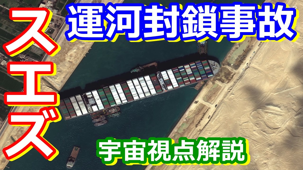 #スカイ三平 #その他の宇宙開発<br>今回は、2021年3月に起きたスエズ運河封鎖事故を宇宙視点で解説します<br>大型コンテナ船のEVER GIVEN(エバーギブン号)が、スエズ運河で座礁してしまい、必死の離礁作業が行われました<br>この座礁事故を、宇宙から撮影した商業衛星画像会社があります<br>そこで、撮影画像を元に衛星の紹介や企業などを解説します<br>内容は、3月28日時点のことです<br><br>宇宙視点解説は久しぶりの投稿です<br><br>いつも広告ありがとうございます<br>有料課金広告はもったいないので、他の優れた動画投稿者へお願いします<br><br>●マイリスト集はこちら<br><span style="color: #006699;"><a href="https://ch.nicovideo.jp/skysanpei/blomaga/ar1828398" target="_blank" rel="noopener nofollow">https://ch.nicovideo.jp/skysanpei/blomaga/ar1828398</a></span><br><span style="color: rgba(0, 0, 0, 0.87);">◆チャンネル登録はこちら</span><br><span style="color: #006699;"><a href="http://www.youtube.com/channel/UChOv-TZWg3X4MDjFUF8CfQg?sub_confirmation=1" target="_blank" rel="noopener nofollow">http://www.youtube.com/channel/UChOv-TZWg3X4MDjFUF8CfQg?sub_confirmation=1</a></span><br><span style="color: rgba(0, 0, 0, 0.87);">◆サブチャンネル(スカイ三平の雑多推進研究所)</span><br><span style="color: #006699;"><a href="http://www.youtube.com/channel/UCpQEOLtOpmXUwslvgi93yQw?sub_confirmation=1" target="_blank" rel="noopener nofollow">http://www.youtube.com/channel/UCpQEOLtOpmXUwslvgi93yQw?sub_confirmation=1</a></span><br><span style="color: rgba(0, 0, 0, 0.87);">◆twitterはこちら</span><br><span style="color: #006699;"><a href="https://twitter.com/skysanpei" target="_blank" rel="noopener nofollow">https://twitter.com/skysanpei</a></span>