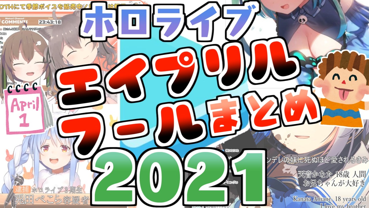 エイプリルフールという名の願望<br>ホロライブJPのみです。<br><br>るんるんる…?【潤羽るしあ】<br><a href="https://youtu.be/TyPV065xWM0" target="_blank" rel="noopener nofollow">https://youtu.be/TyPV065xWM0</a><br><br>【新ビジュアル】進化しました【ホロライブゲーマーズ】<br><a href="https://youtu.be/iZ7uUkQouC8" target="_blank" rel="noopener nofollow">https://youtu.be/iZ7uUkQouC8</a><br><br>そらちゃんのTwitter動画<br><a href="https://twitter.com/tokino_sora/status/1377296519716462595" target="_blank" rel="noopener nofollow">https://twitter.com/tokino_sora/status/1377296519716462595</a><br><br>【エイプリルフール】まつり(5さい)のおうたはいしん!【ホロライブ/夏色まつり】<br><a href="https://youtu.be/SMCm5yq-PME" target="_blank" rel="noopener nofollow">https://youtu.be/SMCm5yq-PME</a><br><br>【】すばるの!全部ホントニュース!【】<br><a href="https://youtu.be/VFQzN4iAmtI" target="_blank" rel="noopener nofollow">https://youtu.be/VFQzN4iAmtI</a><br><br>お兄ちゃんお帰りなさい【天音かなた】<br><a href="https://youtu.be/5GcddJcnd4Q" target="_blank" rel="noopener nofollow">https://youtu.be/5GcddJcnd4Q</a><br><br>【新番組】ぺこにゅーす|PekoNews!!!【ホロライブ/兎田ぺこら】<br><a href="https://youtu.be/fcDwI4OYlRw" target="_blank" rel="noopener nofollow">https://youtu.be/fcDwI4OYlRw</a><br><br>ねるまえ雑談!【桐生ココ/ホロライブ】<br><a href="https://youtu.be/5gVkixM42g8?t=6976" target="_blank" rel="noopener nofollow">https://youtu.be/5gVkixM42g8?t=6976</a><br><br>【牢屋から】緊急生放送ぺこ!!!【ホロライブ/兎田ぺこら】<br><a href="https://youtu.be/oLXuDdZLqoY" target="_blank" rel="noopener nofollow">https://youtu.be/oLXuDdZLqoY</a><br><br>【エイプリルシープ】Tsunomaki Direct 2021.4.1【角巻わため/ホロライブ4期生】<br><a href="https://youtu.be/c3hdmr5mlzc" target="_blank" rel="noopener nofollow">https://youtu.be/c3hdmr5mlzc</a><br><br>2020年のエイプリルフールまとめ→<a href="https://www.nicovideo.jp/watch/sm36607951" class="watch">sm36607951</a><br><br><span style="color: #b7b7b7; font-size: 10px;">ホロライブ切り抜き/なめたけ <a href="https://www.youtube.com/channel/UCUbAVVpHteGtGQPPN9lM3oQ" target="_blank" rel="noopener nofollow">https://www.youtube.com/channel/UCUbAVVpHteGtGQPPN9lM3oQ</a></span>