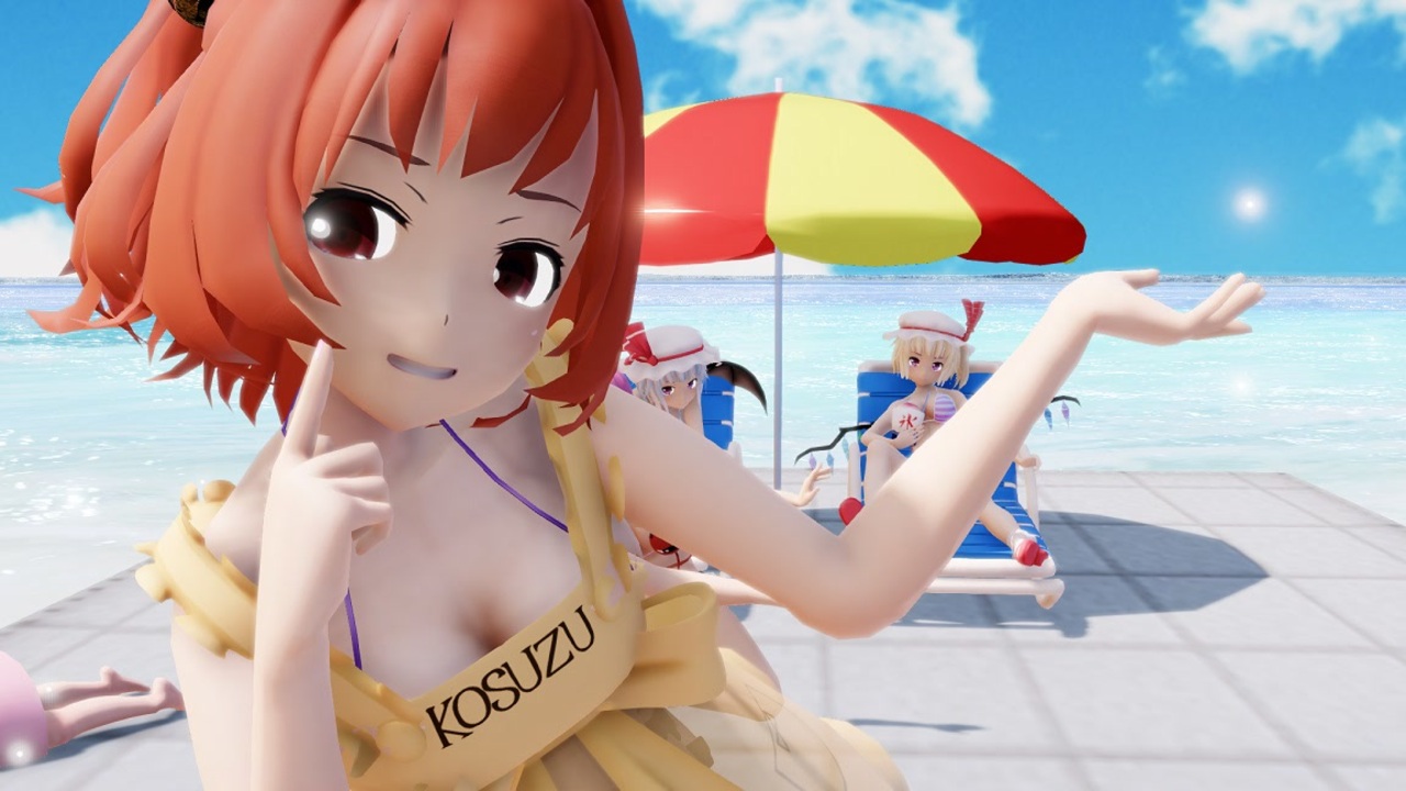 楽曲→<a href="https://www.nicovideo.jp/watch/sm31219241" class="watch">sm31219241</a><br>Dance→<a href="https://www.nicovideo.jp/watch/sm31218942" class="watch">sm31218942</a><br>モーション→<a href="https://www.nicovideo.jp/watch/sm31483758" class="watch">sm31483758</a> moka様<br>カメラ→<a href="https://www.nicovideo.jp/watch/sm32036179" class="watch">sm32036179</a> 操ちゃん様<br><br>モデル<br>魂魄妖夢Ver2.00 パチュリーVer2.00 アールビット様<br>(フランドール・レミリア すけ様)(チルノ・ミスティア・大妖精 えと様)<br>(萃香 モンテコア様)(橙 うどん猫様 nya様)<br>(てゐ・キスメ そばかす魔理沙の人様)<br>(古明地こいし 古明地さとり エボシ様)(すわこ min様)<br>(本居小鈴 つみだんご様)<br><br><br>ビーチ小物セット<br>:<a href="https://seiga.nicovideo.jp/seiga/im6695268" target="_blank" rel="noopener">im6695268</a>(ぽん之助坂様)<br><br>マイリスト<br><a href="https://www.nicovideo.jp/mylist/37755141" target="_blank" rel="noopener">mylist/37755141</a> <a href="https://www.nicovideo.jp/mylist/35776087" target="_blank" rel="noopener">mylist/35776087</a><br><a href="https://www.nicovideo.jp/mylist/31871029" target="_blank" rel="noopener">mylist/31871029</a> <a href="https://www.nicovideo.jp/mylist/31871040" target="_blank" rel="noopener">mylist/31871040</a><br>
