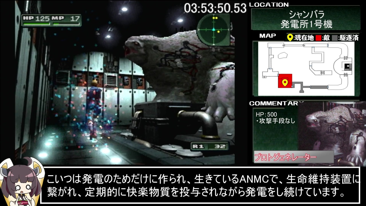 編集をサボって、くSIREN(5周目)を見ていたら、<br>Any%兄貴が完走していました。お疲れナス!!<br><br>前回までほぼ同じ進行度だったのに、<br>こっちはまだ6パート残ってるのおかしい・・・おかしくない?<br><br>中盤に独断と偏見によるクソ長PE評価を入れてみました。<br>※アポビオーシスとライフドレインの効果範囲が実際と異なっているのは、<br>ゲーム内表記の仕様であって編集ミスではありません(半ギレ)<br><br>※追記※<br>武器評価もリクエストで頂いてたんですが、<br>このレギュだとほとんどの武器が使えない&僕自身がデッドリー以外ほぼプレイしてないのもあって、<br>評価にならなかったので没になりました・・・(小声)<br>隠し武器紹介はどこかで入れたいと思います。<br><br>※追記2※<br>音量調整はしたつもりですが、ボーカル曲のBGMで解説が聞きづらくなっていたら申し訳ありません。<br>あと1曲目のEyes On MeはThe 3rd Birthdayの主題歌です。<br>さては皆誕生日プレイしてねぇな?(全ギレ)<br><br><br>ウォッチマン操作~プロトジェネレーター撃破まで<br><br><a href="https://www.nicovideo.jp/watch/sm38462623" class="watch">sm38462623</a>←前|<a href="https://www.nicovideo.jp/mylist/70540439" target="_blank" rel="noopener">mylist/70540439</a>|次→<a href="https://www.nicovideo.jp/watch/sm38555356" class="watch">sm38555356</a><br /><br><strong><u>▼環境</u></strong><br>・PS2実機、連射機なし、高速読み込みなし<br><br><strong><u>▼レギュレーション</u></strong><br>・計測期間:「デッドリーモード」選択~ラスボスに最後の一撃を与えた瞬間<br>・難易度:デッドリーモード<br>・最終セーブポイントで「駆逐率100%」を確認する<br>・ジャベリンバグ使用禁止<br>・(最終的に駆逐率100%であれば)逃走可<br><br>お借りしたきりたん立ち絵→<a href="https://seiga.nicovideo.jp/seiga/im8645890" target="_blank" rel="noopener">im8645890</a><br><br>ついた→<a href="https://twitter.com/KemotooooN_RTA" target="_blank" rel="noopener nofollow">https://twitter.com/KemotooooN_RTA</a><br><br>広告者様紹介は最後にドバーッと行う予定です。