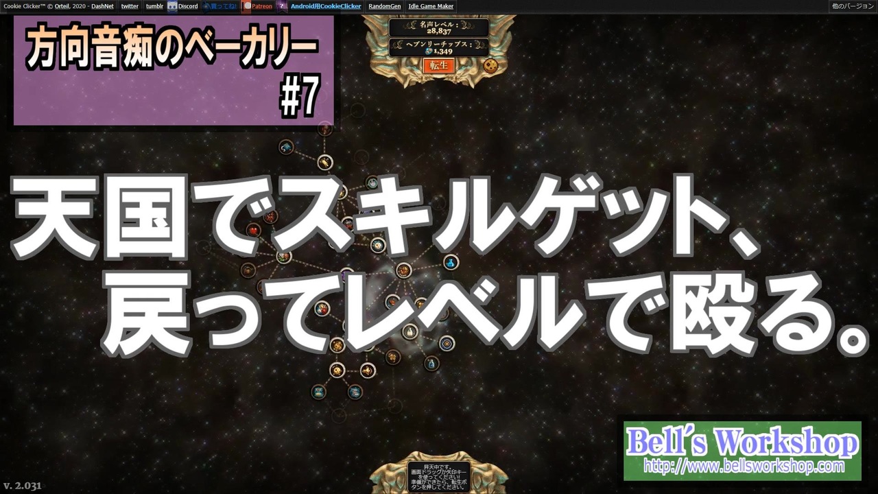 天国でスキルゲット、戻ってレベルで殴る。強くてニューゲーム1回目。<br><br>前:<a href="https://www.nicovideo.jp/watch/sm38525295" class="watch">sm38525295</a> 次:<a href="https://www.nicovideo.jp/watch/sm38567859" class="watch">sm38567859</a> マイリスト:<a href="https://www.nicovideo.jp/mylist/70729379" target="_blank" rel="noopener">mylist/70729379</a><br>※Part7裏話:<a href="http://bellsworkshop.com/cookie-part7/" target="_blank" rel="noopener nofollow">http://bellsworkshop.com/cookie-part7/</a><br><br>ブログ<br><a href="http://www.bellsworkshop.com/" target="_blank" rel="noopener nofollow">http://www.bellsworkshop.com/</a><br><br>Youtubeチャンネル<br><a href="http://www.youtube.com/user/bellsworkshop2" target="_blank" rel="noopener nofollow">http://www.youtube.com/user/bellsworkshop2</a><br><br>Music:purple planet royalty free music <a href="http://www.purple-planet.com/" target="_blank" rel="noopener nofollow">http://www.purple-planet.com/</a><br>Sound:On-Jin ~音人~ <a href="http://on-jin.com/" target="_blank" rel="noopener nofollow">http://on-jin.com/</a><br>