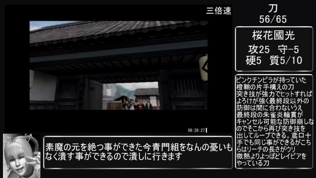 ・無印侍道2を使用<br>・裏技コマンド禁止<br>・はじめからを押して刀蔵及び帯刀に全種類の刀を所持した状態になるまでのタイムを計測<br><br>前 <a href="https://www.nicovideo.jp/watch/sm38414243" class="watch">sm38414243</a><br>次 <a href="https://www.nicovideo.jp/watch/sm38599510" class="watch">sm38599510</a><br>【無編集全編】<a href="https://www.youtube.com/watch?v=dp4hviB9XgI&t=14238s" target="_blank" rel="noopener nofollow">https://www.youtube.com/watch?v=dp4hviB9XgI&t=14238s</a><br>
