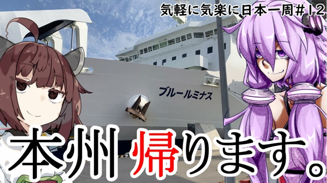 気軽に気楽に日本一周します。今回は本州に帰ります。<br>前回 北海道編その10<a href="https://www.nicovideo.jp/watch/sm38457605" class="watch">sm38457605</a> 次回 茨城編前編<a href="https://www.nicovideo.jp/watch/sm38667286" class="watch">sm38667286</a><br><br>あらすじ(設定)<br> 何が切っ掛けか日本一周しようと思い立った結月ゆかり。会社を辞めようと辞表を提出するが全く相手にされなかった。仕方なく仕事を辞めずに日本一周する方向に切り替え、休暇を利用して分割して各地を回ることに。社畜整備員の結月ゆかり(うp主)、同期の桜の弦巻マキ、マキの後輩の紲星あかり、バイク仲間の東北ずん子、その妹の東北きりたん、ずん子の同級生の琴葉姉妹、何故かいる京町セイカの8人でまったりほのぼの各地を旅する。<br><br>日本一周マイリスト <a href="https://www.nicovideo.jp/mylist/68189694" target="_blank" rel="noopener">mylist/68189694</a><br>いつも作ってる動画のマイリスト <a href="https://www.nicovideo.jp/mylist/66994682" target="_blank" rel="noopener">mylist/66994682</a><br>へんなのマイリスト <a href="https://www.nicovideo.jp/mylist/67629574" target="_blank" rel="noopener">mylist/67629574</a><br>ブロマガ <a href="https://ch.nicovideo.jp/hex165e83" target="_blank" rel="noopener nofollow">https://ch.nicovideo.jp/hex165e83</a><br>Twitter <a href="https://twitter.com/hex165e83" target="_blank" rel="noopener nofollow">https://twitter.com/hex165e83</a>