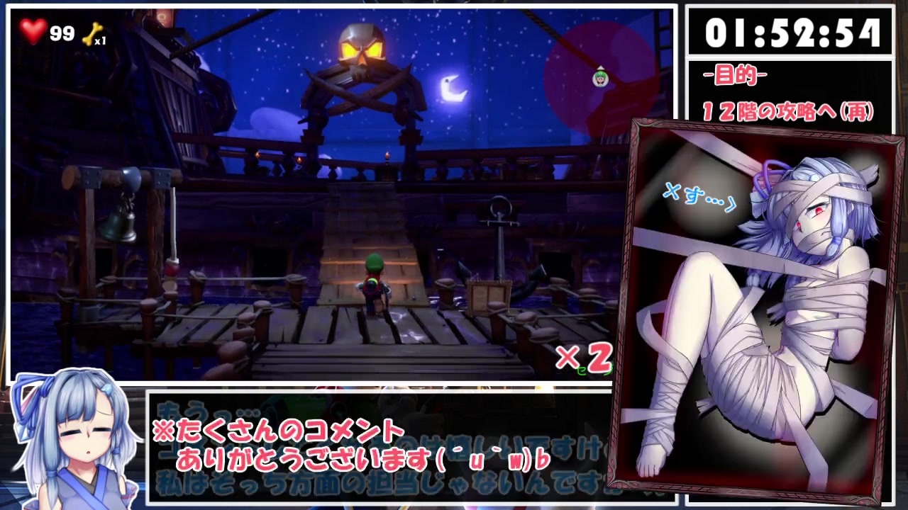 ガバも積もればなんとやら(デジャヴ)<br><br>いる?→<a href="https://seiga.nicovideo.jp/seiga/im10723848" target="_blank" rel="noopener nofollow">https://seiga.nicovideo.jp/seiga/im10723848</a><br><br><strong>※解説の子は完全な趣味です。苦手と感じた方は他の方の動画をご視聴ください。</strong><br><br><span style="color: #4a86e8;"><strong>計測開始:<br>「このゲームはオートセーブされます。『セーブ中…』が表示されている間は本体の電源を<br>OFFにしないでください」の【OK】を押した瞬間。<br><br>計測終了:<br>キングテレサの宝石を手にした瞬間。</strong></span><br><br>前→<a href="https://www.nicovideo.jp/watch/sm38474708" class="watch">sm38474708</a> 次→<a href="https://www.nicovideo.jp/watch/sm38622588" class="watch">sm38622588</a> マイリスト→<a href="https://www.nicovideo.jp/mylist/70557174" target="_blank" rel="noopener">mylist/70557174</a><br><br>・Speedrun.com上の記録:<br>4月07日時点で2時間35分23秒 (世界24人中5位) <a href="https://www.speedrun.com/lm3#Any" target="_blank" rel="noopener nofollow">https://www.speedrun.com/lm3#Any</a><br><br>・無編集版:<br><a href="https://youtu.be/IXtVKlTHIqM" target="_blank" rel="noopener nofollow">https://youtu.be/IXtVKlTHIqM</a><br><br>・プレイ環境:Nintendo switch・プロコン<br><br>ツイッター:@SirayuiEllen<br>