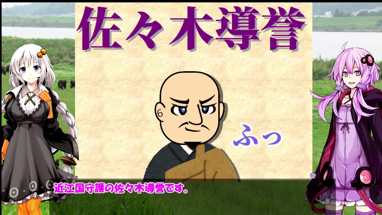 八十八(やそや)です。<br>南朝に京を追われて絶体絶命の足利義詮の前に立ちはだか下る謎の人物!彼が下した選択とは何か!次回、「佐々木導誉の北朝再興!」 デュエル!スタンバイ!!<br>なお、このシリーズは斯波高経の生涯(以下略)<br><br>【きずゆか中世史:裏足利家の興亡】<br>前:武蔵野合戦 英雄!足利尊氏 <a href="https://www.nicovideo.jp/watch/sm38299148" class="watch">sm38299148</a><br>次:山名の報酬 <a href="https://www.nicovideo.jp/watch/sm38660352" class="watch">sm38660352</a><br><br>ツイッター:<a href="https://twitter.com/yasoya_night" target="_blank" rel="noopener nofollow">https://twitter.com/yasoya_night</a><br><br><br><br>(参考資料・敬称略)<br>WikiPedia「佐々木道誉」他の記事<br>観応の擾乱:亀田俊和<br>高一族と南北朝内乱:亀田俊和<br>佐々木導誉:森茂暁<br>天皇家はなぜ続いたか:今谷明他<br>足利一門守護発展史の研究:小川信<br>南朝研究の最前線:呉座勇一・日本史史料研究会<br>室町幕府 全将軍・管領列伝:平野明夫・日本史史料研究会<br>初期室町幕府研究の最前線:亀田俊和・日本史史料研究会<br>国別 守護・戦国大名辞典:西ヶ谷恭弘<br>太平記の時代:新田一郎<br>室町政権の首府構想と京都:桃崎有一郎他<br>ピクトリアル足利尊氏 南北朝の騒乱:永原慶二総監修<br>歴史群像シリーズ⑩戦乱南北朝:学研歴史群像シリーズ編集部<br>太平記の世界 変革の時代を読む:永積安明・上横手政敬・桜井好朗<br>倉山満が読み解く太平記の時代:倉山満<br>倉山満が読み解く足利の時代:倉山満<br>道誉なり:北方謙三<br>