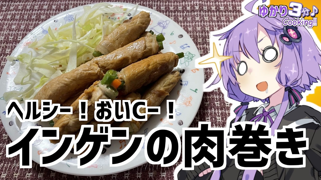 結月ゆかりを使用した料理動画です<br><br>豚ロースで作った(比較的)ヘルシーな肉巻きです!<br>あっさりめで胃にもたれない!<br><br>私の好きなお人形さんは『いいね!』を押せば分かるゾ!<br><br>今回使用した材料<br>豚ロース(薄切り):1パック いんげん:1パック<br>ニンジン:半分 しょうゆ:大さじ1<br>みりん:大さじ1 お酒:大さじ1<br>砂糖:小さじ2 キャベツ:分量外<br><br>前回のポパイチャーハン:<a href="https://www.nicovideo.jp/watch/sm38571930" class="watch">sm38571930</a><br>半年の沈黙を破ってついに最新話が投稿されたきりもり:<a href="https://www.nicovideo.jp/watch/sm38576394" class="watch">sm38576394</a><br><br><strong>オススメのボイロ劇場</strong><br>茜ちゃんと葵ちゃんの現代怪異占い:<a href="https://www.nicovideo.jp/watch/sm38263500" class="watch">sm38263500</a><br><br>ツイッター:<a href="https://twitter.com/mrt89244817" target="_blank" rel="noopener nofollow">https://twitter.com/mrt89244817</a>