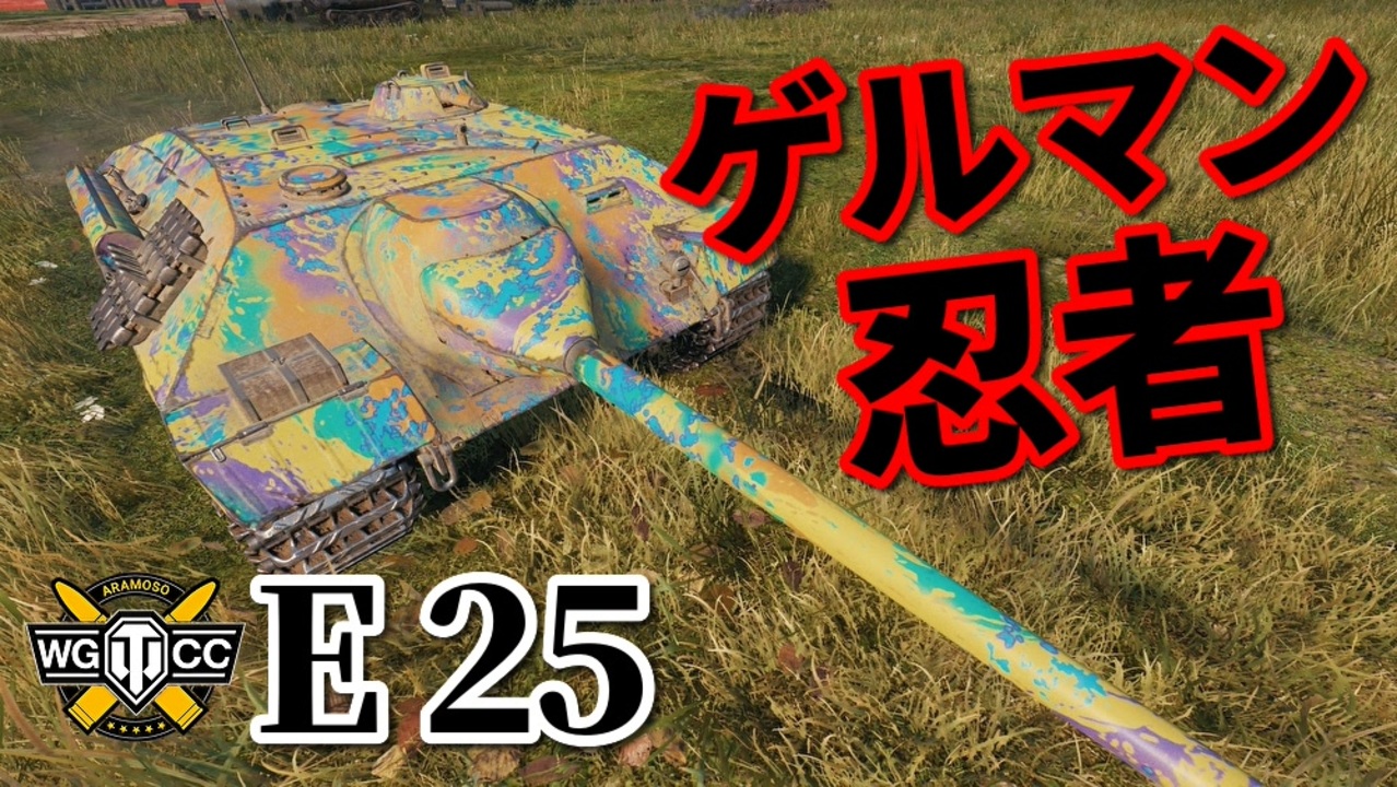 アジアサーバーでWoTを始めよう!<br>好評につき、新規プレイヤー向け招待ミッションが復活!<br>新しくWoTをプレイする方向けに「ミッション付き招待コード」を配布中です。<br>新規アカウントを作る際、コード入力画面に「ARAMOSO」と入れるだけでOK!<br>やったぜ。様々なチャレンジミッションをクリアして報酬をGETだ!<br><br>【コード内容】<br>・500ゴールド<br>・WoTプレミアムアカウント3日分<br>・100Kクレジット<br>・ポーランドプレミアム車両 TKS zn/.k.m 20mm(100%乗員付き)<br>・繰り返し可能なデイリーミッション(EXP、クレジットブースター)<br><br>~~~~~ここから動画説明~~~~~<br>アイエエエ!ニンジャ!?ゲルマンニンジャナンデ!(n回目)<br><br>■プレイヤー:Lena_Liechtenauer[DLTA]<br>■搭乗戦車:E 25(ドイツのTier7駆逐戦車)<br>■拡張パーツ:改良型換気装置、装填棒、双眼鏡<br><br>■YouTube版(高画質)はコチラから<br>URL→<a href="https://youtu.be/ZO9x447r2yk" target="_blank" rel="noopener nofollow">https://youtu.be/ZO9x447r2yk</a><br><br>前→<a href="https://www.nicovideo.jp/watch/sm38583874" class="watch">sm38583874</a> 次→<a href="https://www.nicovideo.jp/watch/sm38604491" class="watch">sm38604491</a><br>WoT用マイリスト【<a href="https://www.nicovideo.jp/mylist/64661257" target="_blank" rel="noopener">mylist/64661257</a>】<br>WoTクランウォーズ動画【<a href="https://www.nicovideo.jp/mylist/55801134" target="_blank" rel="noopener">mylist/55801134</a>】<br>ツイッター【mosomondo】<br><br>【前パートの広告感謝ァ!】<br>がばチョフさん、ドラコニアさん、はいいろさん、バーバ・ヤーガさん、mawasiさん、カズPhoneさん、Lyさん、otonahirasyainさん、ブブタンさん、うらんさん、RAISEさん、makoさん、二式内火艇さん、くろうさぎさん、tsonさん、chassさん、villainさん、エコーさん、小さな緑の人さん、松永ワイリさん<br><br>[この動画はウォーゲーミングジャパン株式会社が権利を所有する著作物を利用しております。c Wargaming.net]