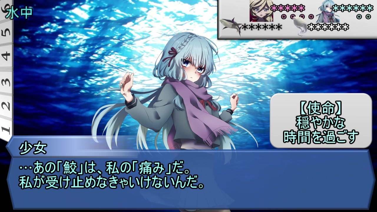 ちょうど水族館に行った日に思いついたシナリオでした。<br><br>前編→<a href="https://www.nicovideo.jp/watch/sm38583970" class="watch">sm38583970</a> 次作→<a href="https://www.nicovideo.jp/watch/sm38622951" class="watch">sm38622951</a><br><br>少女の立ち絵はちり子さんより<br><br>シノビガミマイリスト→<a href="https://www.nicovideo.jp/mylist/60549559" target="_blank" rel="noopener">mylist/60549559</a><br>投稿動画Part1集→<a href="https://www.nicovideo.jp/mylist/62593703" target="_blank" rel="noopener">mylist/62593703</a><br><br>お借りした素材元様<br>アンデッドとか好きだからーーーッ!!!様 <a href="http://lud.sakura.ne.jp/" target="_blank" rel="noopener nofollow">http://lud.sakura.ne.jp/</a><br>ぐったりにゃんこ様 <a href="http://guttari8.sakura.ne.jp/" target="_blank" rel="noopener nofollow">http://guttari8.sakura.ne.jp/</a><br>MusMus様 <a href="https://musmus.main.jp/bgm.html" target="_blank" rel="noopener nofollow">https://musmus.main.jp/bgm.html</a><br>ことり様 <a href="http://kotorisound.blog29.fc2.com/" target="_blank" rel="noopener nofollow">http://kotorisound.blog29.fc2.com/</a><br>フォトAC様 <a href="https://www.photo-ac.com/" target="_blank" rel="noopener nofollow">https://www.photo-ac.com/</a><br>ニコニ・コモンズの皆様<br><br><br>