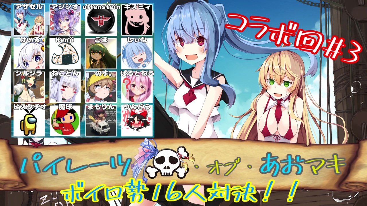 聞いて!月1経ってないのに投稿できたので初投稿です!!!僕えらい超えらい!!!!(慢心)<br><br>海賊コラボ3試合目で御座います!!!<br>今回でコラボ回はラストですが海賊動画はまだまだ続けますのでどうか忘れないで...<br>※撮影日:1月6日<br><br>広告者様紹介は別動画の投稿にて紹介いたします ご了承ください<br><br>【参加して下さった皆様】<br> アジシオさん【<a href="https://www.nicovideo.jp/user/2422200" target="_blank" rel="noopener">user/2422200</a>】<br> ウルフェンさん【<a href="https://www.nicovideo.jp/user/18190020" target="_blank" rel="noopener">user/18190020</a>】<br> キスミィさん【<a href="https://www.nicovideo.jp/user/27503822" target="_blank" rel="noopener">user/27503822</a>】<br> けいるさん【<a href="https://www.nicovideo.jp/user/33156019" target="_blank" rel="noopener">user/33156019</a>】<br> Kenjiさん【<a href="https://www.nicovideo.jp/user/14508886" target="_blank" rel="noopener">user/14508886</a>】<br> ごまさん【<a href="https://www.nicovideo.jp/user/33166102" target="_blank" rel="noopener">user/33166102</a>】<br> しぃなさん【<a href="https://www.nicovideo.jp/user/7586417" target="_blank" rel="noopener">user/7586417</a>】<br> シルシラさん【<a href="https://www.nicovideo.jp/user/220860" target="_blank" rel="noopener">user/220860</a> <a href="https://www.nicovideo.jp/watch/sm38175027" class="watch">sm38175027</a>※3試合目視点】<br> のす。さん【<a href="https://www.nicovideo.jp/user/8542639" target="_blank" rel="noopener">user/8542639</a> <a href="https://www.nicovideo.jp/watch/sm38216800" class="watch">sm38216800</a>※全試合視点】<br> ぱるとねるさん【<a href="https://www.nicovideo.jp/user/51274683" target="_blank" rel="noopener">user/51274683</a>】<br> ピスタチオさん【<a href="https://www.nicovideo.jp/user/53716331" target="_blank" rel="noopener">user/53716331</a> <a href="https://www.nicovideo.jp/watch/sm38212054" class="watch">sm38212054</a>】<br> 魔球さん【<a href="https://www.nicovideo.jp/user/963352" target="_blank" rel="noopener">user/963352</a>】<br> まもりんさん【<a href="https://www.nicovideo.jp/user/60120007" target="_blank" rel="noopener">user/60120007</a> <a href="https://www.nicovideo.jp/watch/sm38107961" class="watch">sm38107961</a>】<br> ねこどんさん【<a href="https://www.nicovideo.jp/user/9356419" target="_blank" rel="noopener">user/9356419</a>】<br> りんどうさん【<a href="https://www.nicovideo.jp/user/448425" target="_blank" rel="noopener">user/448425</a>】<br><br>前回:<a href="https://www.nicovideo.jp/watch/sm38480616" class="watch">sm38480616</a><br>次回:またいつか海賊動画作るよ<br>RE3実況:<a href="https://www.nicovideo.jp/mylist/68264739" target="_blank" rel="noopener">mylist/68264739</a><br>仲間寄生:<a href="https://www.nicovideo.jp/mylist/65959207" target="_blank" rel="noopener">mylist/65959207</a><br>Blasing Sails実況:<a href="https://www.nicovideo.jp/mylist/70582716" target="_blank" rel="noopener">mylist/70582716</a><br>劇場・単発:<a href="https://www.nicovideo.jp/mylist/67528230" target="_blank" rel="noopener">mylist/67528230</a><br>ツイッター <a href="https://twitter.com/AZAZEL2125BW" target="_blank" rel="noopener nofollow">https://twitter.com/AZAZEL2125BW</a>