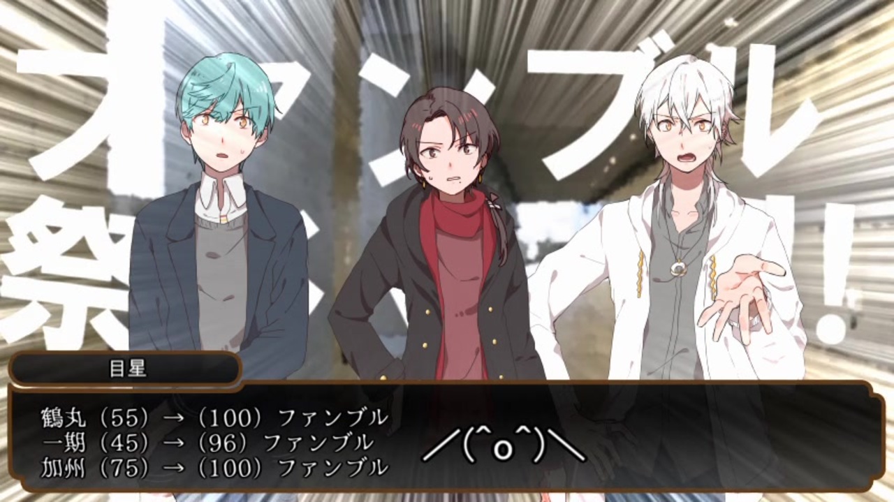 <span style="font-size: 24px;">PL一同「主とKP達にしてやられた…。」<br>KP陣+メガネ+女神「やったぜ。」</span><br><br><br>予定より遅くなってしまってすみません…リアルで繁忙期を迎えてしまいまして…。<br>今後数ヶ月は予定通りに行かないかも知れませんので、近況はTwitterなどで確認して頂けると良いかも知れません。<br><br>そして今回、なぜかオープニングトークの部分のデータが破損してしまい、作り直しも考えましたが時間もないためやむを得ず無しにさせていただきました。<br>その分本編が少し長めになっているため、楽しんでもらえると嬉しいです!<br><br><br>【追記】<br>途中鶴さんのCONを「4」と表記しましたが、<br>正しくは成長分含めて「5」でした…!<br>分解の刑に処されてきますのでお許しください…(´;ω;`)<br><br><br>フリーアイコン配布中【<a href="https://www.pixiv.net/artworks/88935846】" target="_blank" rel="noopener nofollow">https://www.pixiv.net/artworks/88935846】</a><br><br>三次創作を頂きました!<br>しばらくの間Twitterのプロフに固定しておきますので<br>お時間のある方やしっかり見たいという方は<br>Twitterにてお願いします!【@saionka_nico】<br><br><br><br>【注意】<br>・創作審神者が出てきます。メガネです。<br>・脳内セッションですが実際にダイスを振って進めています。<br>・当本丸特有の設定があります。<br> 設定にご納得頂けない方はご視聴をお控えください。<br>・PLである刀剣男士の他に、【常世の人形館】【毒入りスープ】【古樫山の火】で出てきた顔付きNPC達が出てきます。<br> NPCについての詳しい設定などは各シリーズのご視聴をお願い致します。<br><br><br>【常世の人形館 part1】<a href="https://www.nicovideo.jp/watch/sm29913201" class="watch">sm29913201</a><br>【毒入りスープ part1】<a href="https://www.nicovideo.jp/watch/sm31415351" class="watch">sm31415351</a><br>【古樫山の火 part1】<a href="https://www.nicovideo.jp/watch/sm32159299" class="watch">sm32159299</a><br><br><br>お借りしたものはコンテンツツリーなど。<br>素晴らしい立ち絵はアッポロン様、ぎゅうにゅう様、ニコニコモンズから<br>注意事項を必ずお読み下さい。<br><br>PON卓本丸マイリスト:<a href="https://www.nicovideo.jp/mylist/57362016" target="_blank" rel="noopener">mylist/57362016</a><br>前:<a href="https://www.nicovideo.jp/watch/sm38405252" class="watch">sm38405252</a><br>次:<a href="https://www.nicovideo.jp/watch/sm38804622" class="watch">sm38804622</a><br>Twitter【@saionka_nico】 投稿日や進捗状況など何気ない事をここでつぶやいています。