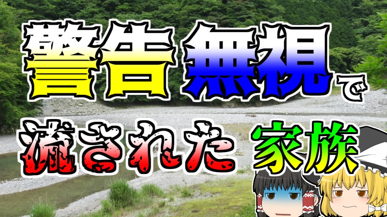 今回は以前からリクエストを多数貰っていた『玄倉川水難』の紹介です。<br>中州にテントを張るという危なさや、水辺での雨の危険は、この事例以降とても有名になり、<br><br>多くの人に認知されるようになりました。<br><br>※追記<br>「足柄」が「足利」になっている箇所と、『山北町』の読みが「やまのきた」になっている箇所がありました。正しくは「やまきたまち」です。<br>訂正してお詫びします。申し訳ありません。<br><br><br><br><br>引用:出典:参考<br>Wikipedia<br><a href="https://ishort.ink/e7R9" target="_blank" rel="noopener nofollow">https://ishort.ink/e7R9</a><br><a href="https://ishort.ink/s52E" target="_blank" rel="noopener nofollow">https://ishort.ink/s52E</a><br>神奈川タウンニュース<br><a href="https://ishort.ink/jDqJ" target="_blank" rel="noopener nofollow">https://ishort.ink/jDqJ</a><br>ミレー公式オンラインストア<br><a href="https://ishort.ink/tPm9" target="_blank" rel="noopener nofollow">https://ishort.ink/tPm9</a><br>ウェザーニュース:写真時事<br><a href="https://ishort.ink/U4Av" target="_blank" rel="noopener nofollow">https://ishort.ink/U4Av</a><br><a href="https://ishort.ink/Z2DX" target="_blank" rel="noopener nofollow">https://ishort.ink/Z2DX</a><br>BGM<br>海底の神殿 by MAKOOTO<br><a href="https://dova-s.jp/bgm/play7690.html" target="_blank" rel="noopener nofollow">https://dova-s.jp/bgm/play7690.html</a><br><br><br />※この動画は過去の事件を知り、現在でも同じことが発生する危険性を再認識、関与しないように促すための動画であり、視聴者を扇動、動揺を誘うためのコンテンツではありません。<br><br>ご要望にお応えして、メンバーシップの開設を行いました。<br>下記URLからも登録可能ですので、ご興味がある方は是非ご参加ください。<br><a href="https://www.youtube.com/channel/UCcT5a1J7XJW7CLYI2RKl4pw/join" target="_blank" rel="noopener nofollow">https://www.youtube.com/channel/UCcT5a1J7XJW7CLYI2RKl4pw/join</a><br><br><br>Twitter<br>→<a href="https://twitter.com/yukkurisurutoko" target="_blank" rel="noopener nofollow">https://twitter.com/yukkurisurutoko</a><br><br>取り急ぎ、簡易的にですがマイリストを作りました。<br>【ゆっくり解説】事故・事件関係紹介リスト <br><a href="https://www.nicovideo.jp/mylist/71034319" target="_blank" rel="noopener nofollow">https://www.nicovideo.jp/mylist/71034319</a><br>【ゆっくり解説】放射線系事故<br><a href="https://www.nicovideo.jp/mylist/71034368" target="_blank" rel="noopener nofollow">https://www.nicovideo.jp/mylist/71034368</a><br>【ゆっくり解説】鉄道系事故・事件関連<br><a href="https://www.nicovideo.jp/mylist/71034379" target="_blank" rel="noopener nofollow">https://www.nicovideo.jp/mylist/71034379</a>