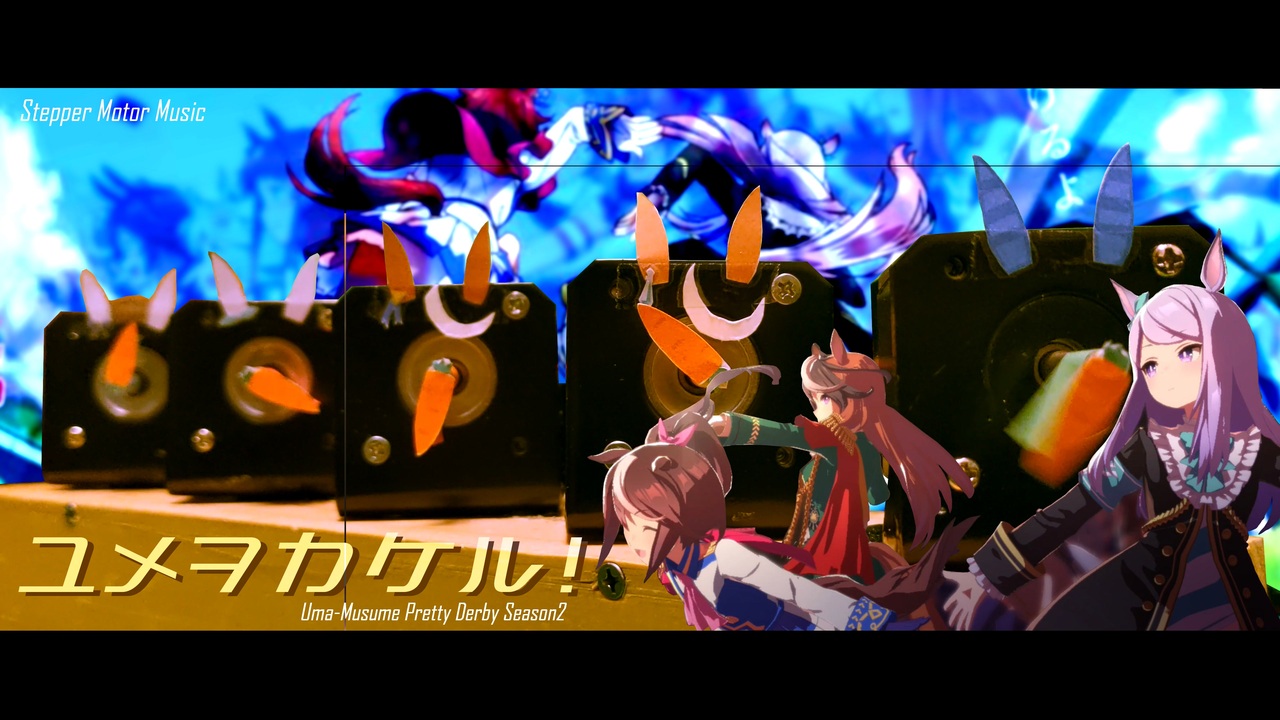 ウマ娘プリティーダービーより『<span style="color: #38761d;"><strong>ユメヲカケル!</strong></span>』をステッピングモータで演奏してみました。<br>元気の出る曲をありがとう…<br><br>野良トレーナーさん、バイキング小峠さん、DDMさん、ルルさん、月光さん、Koma3さん、夕風さん他、ニコニ広告くださった方本当にありがとうございます!!<br><br>出走メンバー(イメージ)は迷いに迷って決めました。<br>###################∩###################<br>①ゴールドシップ(コンテンツを支えた女枠)<br>②メジロマックイーン(アニメ2期枠<span style="font-size: 10px;"><s>兼某120億の親族</s></span>)<br>③トウカイテイオー(アニメ2期枠)<br>④シンボリルドルフ(俺の愛馬枠<span style="font-size: 10px;"><s>兼センターの親</s></span>)<br>⑤ツインターボ(厳正なる抽選枠)<br>#######################################<br>--------------------------------------------------<br>原曲様(YouTube)→<a href="https://www.youtube.com/watch?v=mk4S76_Z224" target="_blank" rel="noopener nofollow">https://www.youtube.com/watch?v=mk4S76_Z224</a><br>公式→<a href="https://umamusume.jp/" target="_blank" rel="noopener nofollow">https://umamusume.jp/</a><br><span style="font-size: 14px;">--------------------------------------------------</span><br>前作→<a href="https://www.nicovideo.jp/watch/sm38471885" class="watch">sm38471885</a><br><br><span style="color: #efefef; font-size: 10px;">ヘタクソカメラワークはご愛嬌ということで…</span>