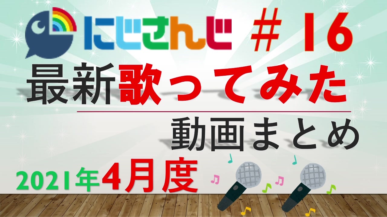 <span style="color: #00ff00;">◆</span>期間:2021年4月1日~4月30日<br><span style="color: #00ff00;">◆</span>対象:にじさんじライバーによる歌ってみた動画<br><span style="font-size: 10px;">(にじさんじのみ対象。JP・ID・KR)</span><br><span style="color: #00ff00;">◆</span><span style="color: #262626;">参考サイト:</span><br>VMusic Ch. 様<br><a href="https://music.vtuber-ch.com/?gname=にじさんじALL" target="_blank" rel="noopener nofollow">https://music.vtuber-ch.com/?gname=にじさんじALL</a><br>にじさんじ非公式Wiki 様<br><a href="https://wikiwiki.jp/nijisanji/歌唱まとめ" target="_blank" rel="noopener nofollow">https://wikiwiki.jp/nijisanji/歌唱まとめ</a><br><br>プレイリストは上記非公式Wiki内のプレイリストをご活用ください。<br>気になる歌動画を見つけたらぜひ、元動画をご覧ください!!<br><br><span style="color: #ff0000; font-size: 18px;">今回より、オリジナルソングの除外を解除させていただいています。</span><br><br><span style="color: #262626;">お詫び 掲載漏れ</span><br><span style="font-size: 10px;">【HUZ・LeeRoha】 Zzz - 일상(日常) ED / 佐咲紗花 □<br><a href="https://www.youtube.com/watch?v=9Xhr2jYPTGI" target="_blank" rel="noopener nofollow">https://www.youtube.com/watch?v=9Xhr2jYPTGI</a><br>【戌亥とこ×奏みみ】浪漫と算盤 - 椎名林檎と宇多田ヒカル【COVER】<br><a href="https://www.youtube.com/watch?v=4iNlOfX9G1k" target="_blank" rel="noopener nofollow">https://www.youtube.com/watch?v=4iNlOfX9G1k</a></span>