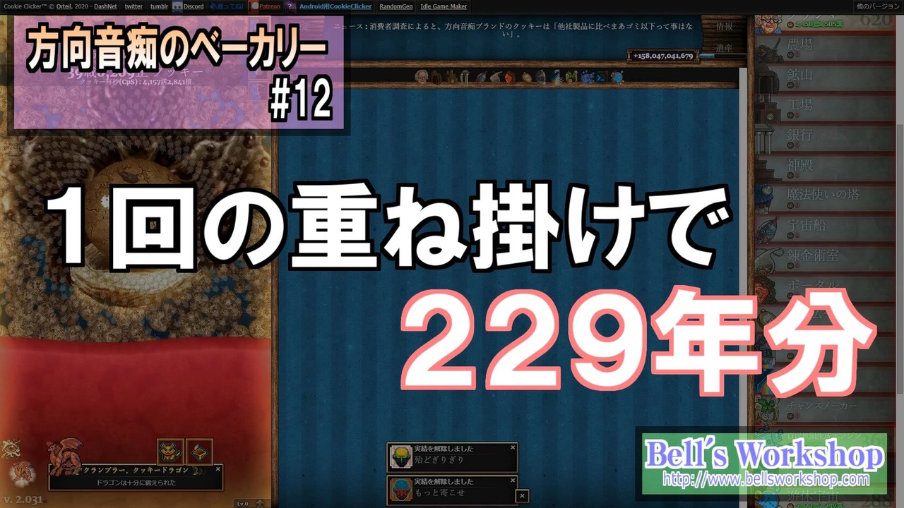 もっぺんドラゴンフライトの重ね掛け狙ってみるよ。そして新単位2つ登場!<br><br>前:<a href="https://www.nicovideo.jp/watch/sm38640014" class="watch">sm38640014</a> 次:<a href="https://www.nicovideo.jp/watch/sm38731148" class="watch">sm38731148</a> マイリスト:<a href="https://www.nicovideo.jp/mylist/70729379" target="_blank" rel="noopener">mylist/70729379</a><br>※Part12裏話:<a href="http://bellsworkshop.com/cookie-part12/" target="_blank" rel="noopener nofollow">http://bellsworkshop.com/cookie-part12/</a><br><br>ブログ<br><a href="http://www.bellsworkshop.com/" target="_blank" rel="noopener nofollow">http://www.bellsworkshop.com/</a><br><br>Youtubeチャンネル<br><a href="http://www.youtube.com/user/bellsworkshop2" target="_blank" rel="noopener nofollow">http://www.youtube.com/user/bellsworkshop2</a><br><br>Music:purple planet royalty free music <a href="http://www.purple-planet.com/" target="_blank" rel="noopener nofollow">http://www.purple-planet.com/</a><br>Sound:On-Jin ~音人~ <a href="http://on-jin.com/" target="_blank" rel="noopener nofollow">http://on-jin.com/</a><br>