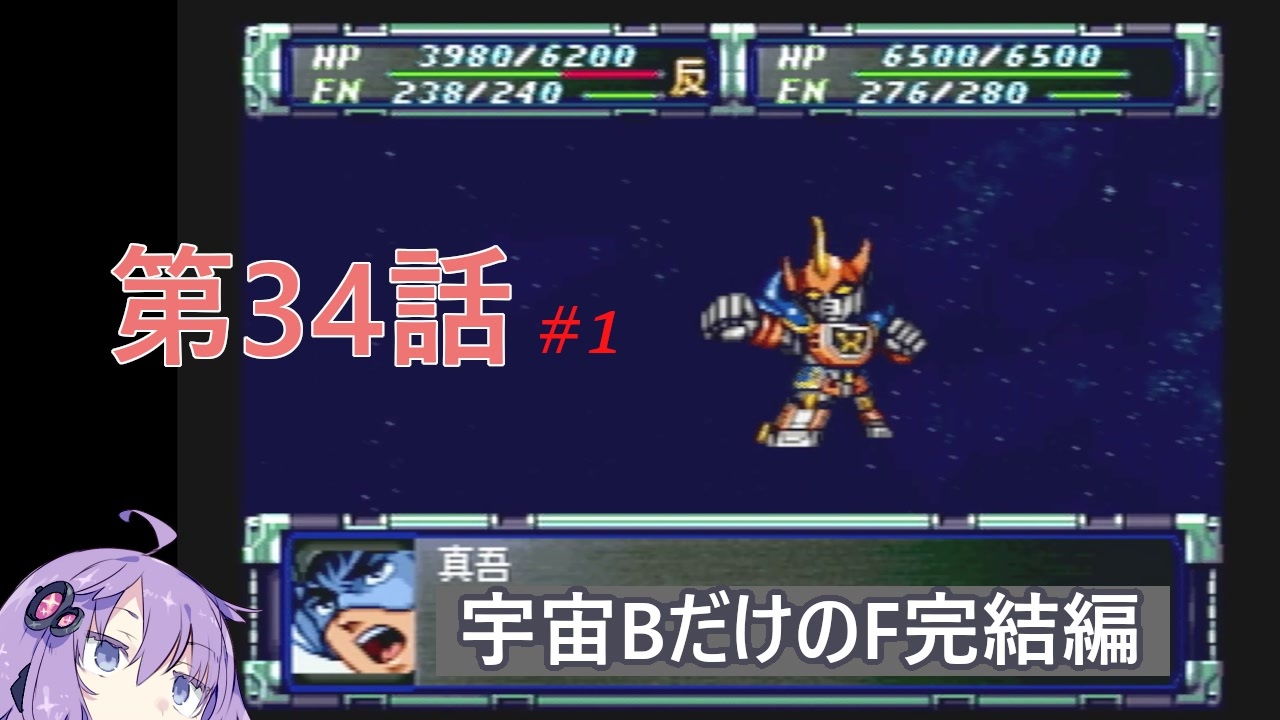 (RTA以外は)初投稿です<br>タイトル通り、スーパーロボット大戦F完結編を、宇宙Bのユニットだけでクリアする動画です<br><br>プレイ条件<br>①完結編から開始<br>②出撃時点で地形対応が宇宙Bであれば、制限なく使用可能<br>③宇宙B以外のユニットは出撃不可。AはもちろんC以下も不可。<br> ゲッターはポセイドンor真3に即時変形する事を条件に可。<br>④宇宙B以外のユニットが強制出撃となる場合は、攻撃と精神コマンド以外は許可する。<br> 宇宙Bユニットの精神コマンドで宇宙B以外を回復したりするのは有りだが、修理や補給などの経験値が変動する行動は禁止<br>④マップ中のコンティニュー禁止<br>⑤精神コマンド「幸運」は使用禁止<br><br><br> ここ←前 <a href="https://www.nicovideo.jp/mylist/70998842" target="_blank" rel="noopener">mylist/70998842</a> 次→<a href="https://www.nicovideo.jp/watch/sm38704957" class="watch">sm38704957</a><br><br>追記<br>1:00 44話で離脱するユニットを壮大に勘違いしていました。何故かスーパー系全部使えないと思っていたのですが、確認したら離脱するのはマジンガー系とグラン・ガランなので、全然詰まないです。申し訳ない。<br><br> <br>環境はPS2実機 SCPH-90000<br><br>お借りしたゆかりさん <a href="https://seiga.nicovideo.jp/seiga/im6232152" target="_blank" rel="noopener">im6232152</a>