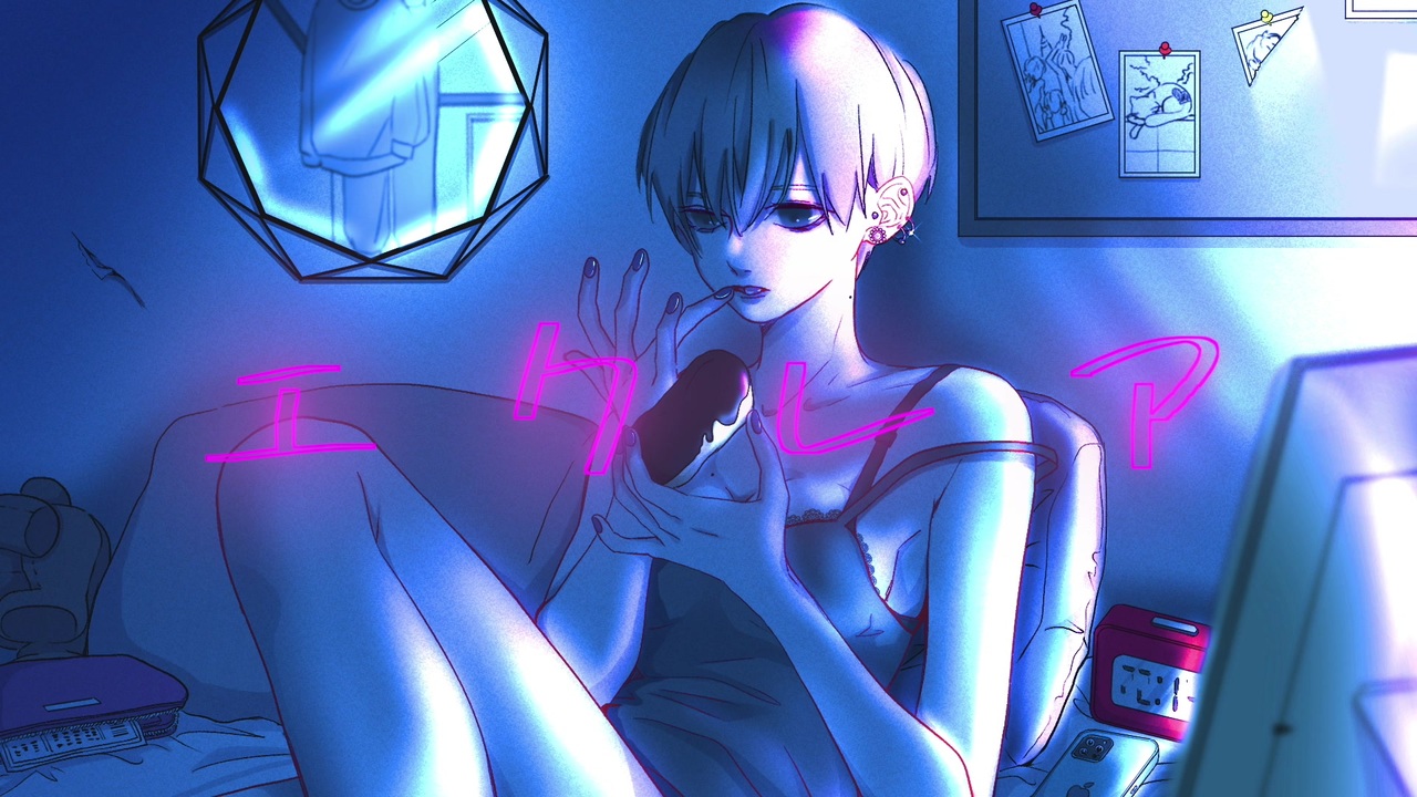 初投稿です。<br>よろしくお願いします。<br><br>次に進むための曲です。<br><br>□サブスク配信中□<br><a href="https://t.co/hd1tj9FD44" target="_blank" rel="noopener nofollow">https://t.co/hd1tj9FD44</a><br>---------------------------------------------------<br><br>【Illustration】くろはら。<br>Twitter : <a href="https://twitter.com/kurohara_____" target="_blank" rel="noopener nofollow">https://twitter.com/kurohara_____</a><br><br>【MUSIC】ハイノミ<br>Twitter : <a href="https://twitter.com/HYNOME" target="_blank" rel="noopener nofollow">https://twitter.com/HYNOME</a><br>Youtube : <a href="https://www.youtube.com/channel/UCRFpNbSfNyHl5A4eyB9M1eg" target="_blank" rel="noopener nofollow">https://www.youtube.com/channel/UCRFpNbSfNyHl5A4eyB9M1eg</a><br><br>offvocal <a href="https://drive.google.com/file/d/1c-tQNzueCRZCfvZFX2XBYyyRJQ9JWcgN/view?usp=sharing" target="_blank" rel="noopener nofollow">https://drive.google.com/file/d/1c-tQNzueCRZCfvZFX2XBYyyRJQ9JWcgN/view?usp=sharing</a><br>-3 <a href="https://drive.google.com/file/d/1WAScBO-lo24r7X9eBB9K9MCR9j8yZ-HU/view?usp=sharing" target="_blank" rel="noopener nofollow">https://drive.google.com/file/d/1WAScBO-lo24r7X9eBB9K9MCR9j8yZ-HU/view?usp=sharing</a><br>+3 <a href="https://drive.google.com/file/d/1_JA85STZRHz0VGzx7IAOhE5A4enXpvKa/view?usp=sharing" target="_blank" rel="noopener nofollow">https://drive.google.com/file/d/1_JA85STZRHz0VGzx7IAOhE5A4enXpvKa/view?usp=sharing</a><br><br>-----------------------<br><br>冷たい時間 ただ平坦空間<br>壁の傷と話していた<br>溶ける声もうない ビターチョコレイト<br>気付けば離していた<br><br>「愛してる それでも」<br>昨日の中 揺らいでる<br><br>君の声がでたらめな愛が<br>まだそこで呼吸してる<br>買い溜めてあったエクレアの味は<br>少し苦くて甘い甘い<br><br>きっとずっとわかっていた<br>この先へと道はもう続かないこと<br>ここでそっとずっと持っていた<br>その甘くて苦いかけらが落ちていく<br><br>忘れてったスウェット あの日のレシート<br>カスタードクリームは好きになれない<br>ズレてる時計 消し忘れた写真<br>ねえ 誰を見ていたんだい<br><br>冷たい時間 ただ平坦空間<br>色の無い視界に迷う<br>溶ける声もうない 溶けたチョコレイト<br>ふとした瞬間に君の香り<br><br>君の声がでたらめな愛が<br>まだそこで呼吸してる<br>買い溜めてあったエクレアの味は<br>少し苦くて甘い甘い<br><br>きっとずっとわかっていた<br>ただ終わらない理由だけ見続けてた<br>ここでそっとずっと持っていた<br>その甘くて苦いかけらが落ちていく