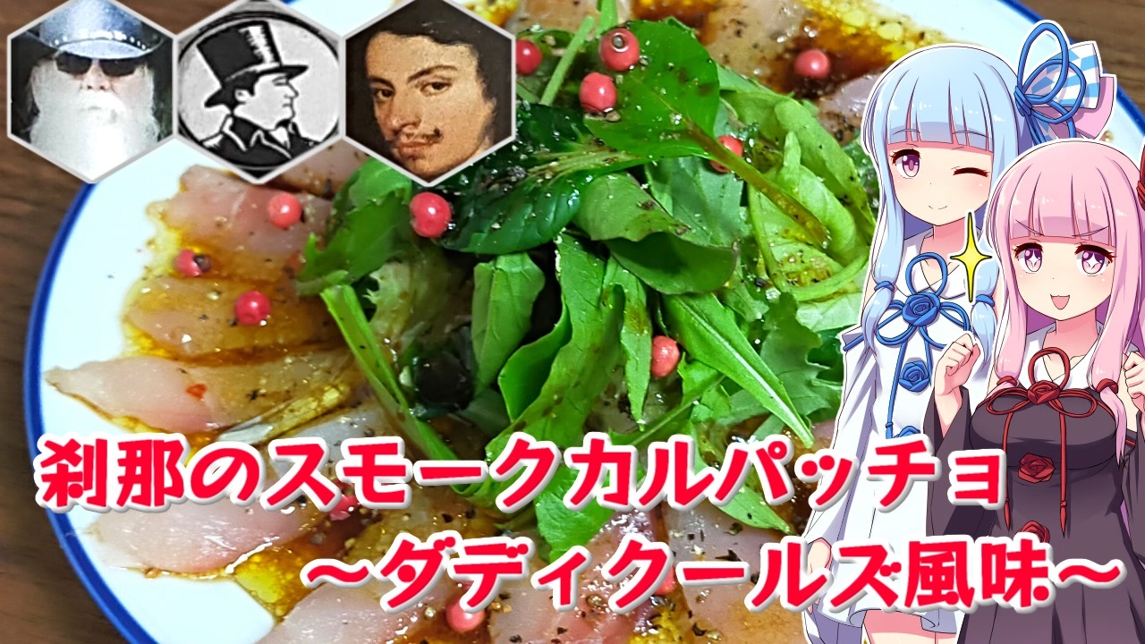熟成したお魚でスモーキー&フルーティなカルパッチョを作ろう!<br>味付けはカッコいいダディたちにお任せ♪<br><br>りょの字さん主催の投稿企画「N1グランプリ」(<a href="https://www.nicovideo.jp/watch/sm38532649" class="watch">sm38532649</a>)に<br>実在料理部門で参加します!<br><br><br /><フィッシング&キッチン><br>・釣りのあとには♪ :<a href="https://www.nicovideo.jp/mylist/70573242" target="_blank" rel="noopener">mylist/70573242</a><br><br><グルメ><br>・セイカの麺Life! :<a href="https://www.nicovideo.jp/mylist/73415443" target="_blank" rel="noopener">mylist/73415443</a><br>・琴葉うまいもの巡り :<a href="https://www.nicovideo.jp/mylist/70295227" target="_blank" rel="noopener">mylist/70295227</a><br><br><世界一周旅行><br>・地球ぐるっと旅! :<a href="https://www.nicovideo.jp/mylist/77484298" target="_blank" rel="noopener">mylist/77484298</a><br><br><キッチン><br>・琴燻♪(燻製) :<a href="https://www.nicovideo.jp/mylist/70979610" target="_blank" rel="noopener">mylist/70979610</a><br>・キッチン投稿祭 :<a href="https://www.nicovideo.jp/mylist/71621280" target="_blank" rel="noopener">mylist/71621280</a><br>・きりたんめん! :<a href="https://www.nicovideo.jp/mylist/74447174" target="_blank" rel="noopener">mylist/74447174</a><br><br><その他><br>・音楽 (SynthesizerV) :<a href="https://www.nicovideo.jp/mylist/72930784" target="_blank" rel="noopener">mylist/72930784</a><br>・あおいガーデニング! :<a href="https://www.nicovideo.jp/mylist/73119922" target="_blank" rel="noopener">mylist/73119922</a>