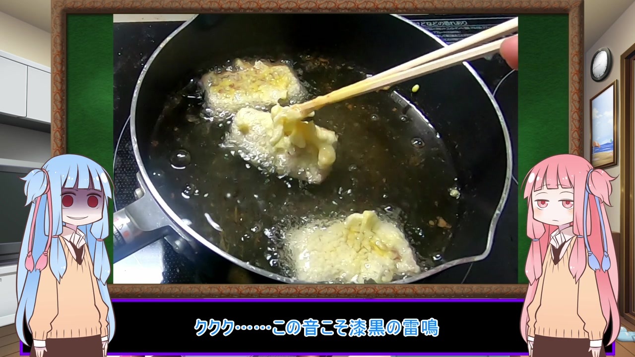 <span style="font-size: 16px;"><strong>こんなに手抜きで雑なのにクッソうまい(こなみかん)</strong></span><br><s>実在料理ですかね…一応。</s> 名前がアレなので創作料理部門にスルゥ!<br><br><strong>ジャッケルフォードではなくシャッケルフォードです!</strong><br>すみません許してください!なんでもry<br><br>ブラック→漆黒、サンダー→雷鳴ってことで一つ。<br><br><span style="color: #0000ff;"><strong>葵「創作料理のつもりなんだけど」</strong></span><br><span style="color: #ff0000;"><strong>茜「ただの天ぷらで創作名乗るのは100年早い」</strong></span><br><br><span style="color: #0000ff;"><strong><祭について><br>主催:りょの字様(<a href="https://www.nicovideo.jp/user/89340736" target="_blank" rel="noopener">user/89340736</a>)<br>告知:<a href="https://www.nicovideo.jp/watch/sm38532649" class="watch">sm38532649</a><br>開会:<a href="https://www.nicovideo.jp/watch/sm38673698" class="watch">sm38673698</a></strong></span><br><br><span style="color: #ff0000;"><strong><他の皆様の動画><br>実在料理部門参加作品→<a href="https://www.nicovideo.jp/mylist/70968668" target="_blank" rel="noopener">mylist/70968668</a><br>創作料理部門参加作品→<a href="https://www.nicovideo.jp/mylist/70968684" target="_blank" rel="noopener">mylist/70968684</a></strong></span><br><br><私について><br>VOICEROIDキッチン:<a href="https://www.nicovideo.jp/mylist/67870629" target="_blank" rel="noopener">mylist/67870629</a><br>山に登ってポケGOしたり:<a href="https://www.nicovideo.jp/mylist/64148970" target="_blank" rel="noopener">mylist/64148970</a><br>メイン活動(おっさん声入り注意):<a href="https://www.nicovideo.jp/mylist/23916548" target="_blank" rel="noopener">mylist/23916548</a><br><br>ついった:<a href="https://twitter.com/felpurrninja" target="_blank" rel="noopener nofollow">https://twitter.com/felpurrninja</a><br><br><使わせていただいたもの→コンテンツツリーから!><br>キャラ:<a href="https://seiga.nicovideo.jp/seiga/im5274301" target="_blank" rel="noopener">im5274301</a>、<a href="https://seiga.nicovideo.jp/seiga/im5332607" target="_blank" rel="noopener">im5332607</a>(新島秋一様)<br>BGM:<a href="https://commons.nicovideo.jp/works/nc11577" target="_blank" rel="noopener">nc11577</a>、<a href="https://commons.nicovideo.jp/works/nc98117" target="_blank" rel="noopener">nc98117</a><br>背景:<a href="https://commons.nicovideo.jp/works/nc148839" target="_blank" rel="noopener">nc148839</a>、<a href="https://commons.nicovideo.jp/works/nc205888" target="_blank" rel="noopener">nc205888</a>