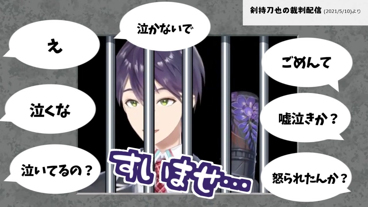 草<br>剣持刀也<br><a href="https://www.youtube.com/channel/UCv1fFr156jc65EMiLbaLImw?sub_confirmation=1" target="_blank" rel="noopener nofollow">https://www.youtube.com/channel/UCv1fFr156jc65EMiLbaLImw?sub_confirmation=1</a><br><a href="https://twitter.com/rei_Toya_rei" target="_blank" rel="noopener nofollow">https://twitter.com/rei_Toya_rei</a><br><br>▼元動画<br>【有罪か】剣持刀也の裁判配信【無罪か】(2021/5/10)<br><a href="https://www.youtube.com/watch?v=WxQRb2fGqok" target="_blank" rel="noopener nofollow">https://www.youtube.com/watch?v=WxQRb2fGqok</a><br>(泣き 39:04~)<br><a href="https://youtu.be/WxQRb2fGqok?t=2344" target="_blank" rel="noopener nofollow">https://youtu.be/WxQRb2fGqok?t=2344</a>