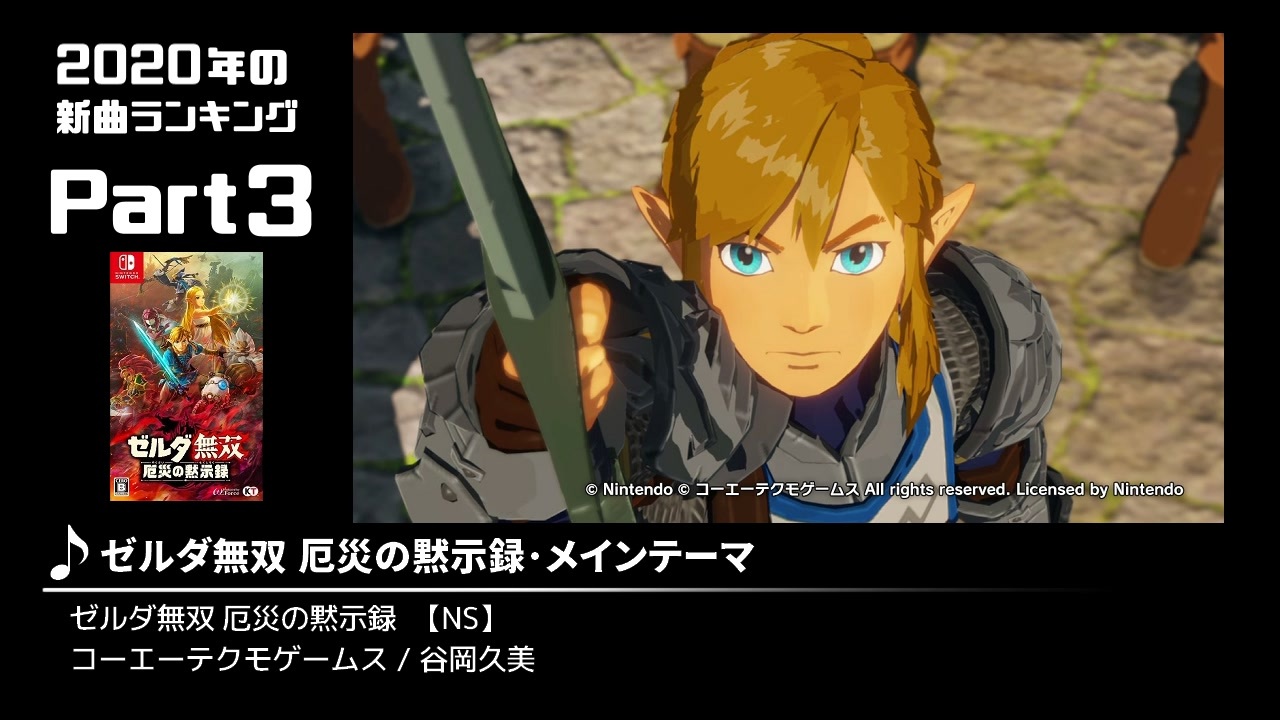 Part3です。259~242位の24曲を収録。<br><br><br><br><a href="https://www.nicovideo.jp/watch/sm38705540" class="watch">sm38705540</a> ←前【<a href="https://www.nicovideo.jp/mylist/70960801" target="_blank" rel="noopener">mylist/70960801</a>】次→ <a href="https://www.nicovideo.jp/watch/sm38773205" class="watch">sm38773205</a><br><br>SS収集状況:<br><a href="https://kara-age.blogspot.com/2021/05/2020ss.html" target="_blank" rel="noopener nofollow">https://kara-age.blogspot.com/2021/05/2020ss.html</a><br>SS投稿用メールフォーム(ミスの報告等もこちらへ):<br><a href="https://ws.formzu.net/dist/S82049931/" target="_blank" rel="noopener nofollow">https://ws.formzu.net/dist/S82049931/</a><br><br><br><span style="color: #3c78d8;"><strong>【お知らせ】</strong></span><br>気になるゲーム見つけたけどググるのダルいな……という(まるでうp主みたいな)人のためにゲームとサントラの購入先をまとめた記事をご用意しました。<s>ヒマか?</s><br><a href="https://kara-age.blogspot.com/2021/05/2020.html" target="_blank" rel="noopener nofollow">https://kara-age.blogspot.com/2021/05/2020.html</a><br>※動画用に色々調べるついでになんか気まぐれで作っただけなので来年には期待しないでください<br><br>