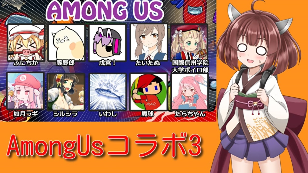2/21にふにちかさん主催で開催されたコラボの動画です<br>動画の構成の都合で参加者の出番に偏りが出来てしまって申し訳ないです<br><br><span style="font-size: 14px;">私以外の参加者もとても面白い動画を上げているので是非一緒に見てください</span><br><br>「ふにんがす」の大百科まで出来たみたいで、ふにんがす人気がどんどん高まっていきますね<br>まだボイロ界隈じゃ新参の私がこんな大規模で素敵なコラボに参加させてもらえるなんて本当に恵まれていると思います<br>恵まれすぎていて反動で近いうちに死ぬかもしれません<br>私を誘って頂いたふにちかさんと一緒に遊んで頂いた参加メンバーの皆さん、そして企画を盛り上げてくれている視聴者の皆様には感謝の気持でいっぱいです<br>この場を借りてお礼申し上げます<br>本当にありがとうございました<br><br><参加者><br>戌宮さん→<a href="https://www.nicovideo.jp/user/30627096" target="_blank" rel="noopener">user/30627096</a><br>いわしさん→<a href="https://www.nicovideo.jp/user/15086302" target="_blank" rel="noopener">user/15086302</a><br>如月ラギさん→<a href="https://www.nicovideo.jp/user/814203" target="_blank" rel="noopener">user/814203</a><br>シルシラさん→<a href="https://www.nicovideo.jp/user/220860" target="_blank" rel="noopener">user/220860</a><br>たいたぬさん→<a href="https://www.nicovideo.jp/user/41035256" target="_blank" rel="noopener">user/41035256</a><br>たらちゃんさん→<a href="https://www.nicovideo.jp/user/49977741" target="_blank" rel="noopener">user/49977741</a><br>豚野郎さん→<a href="https://www.nicovideo.jp/user/1136144" target="_blank" rel="noopener">user/1136144</a><br>ふにちかさん→<a href="https://www.nicovideo.jp/user/1399358" target="_blank" rel="noopener">user/1399358</a><br>魔球さん→<a href="https://www.nicovideo.jp/user/963352" target="_blank" rel="noopener">user/963352</a><br><br>動画内で話題に出した回<br>【AMONGUS】たのしくみんなで AMONGUS【サイレントキラー編】<br><a href="https://www.nicovideo.jp/watch/sm38472448" class="watch">sm38472448</a><br>【Among us】紲星あかりに天の声 #8【VOICEROID実況】<br><a href="https://www.nicovideo.jp/watch/sm38549283" class="watch">sm38549283</a><br><br><br>効果音<br>効果音ラボ様<br><a href="https://soundeffect-lab.info/" target="_blank" rel="noopener nofollow">https://soundeffect-lab.info/</a><br><br>BGM<br>3年前にサービス終了したとあるスマホゲームのもの(私のアイコンもそのゲームのキャラ)<br><br><br /><br><br><span style="color: #262626;"><strong>※私の動画のネタを直接関係のない動画内で使うことはお控えください<br>また、コラボ動画のネタをコラボ動画と関係のない動画で出すこともお控えください</strong></span><br><br>最近私のことを知った人向けに、私の代表作アンパンマンキャラ講座のおすすめ回をまとめてみました<br>1回3分程度の短い動画なのでまだ見たことない人は1つでいいから見てみてね<br><a href="https://www.nicovideo.jp/mylist/71615156" target="_blank" rel="noopener">mylist/71615156</a><br><br>●Twitter<br><a href="https://twitter.com/shinsyu_poem" target="_blank" rel="noopener nofollow">https://twitter.com/shinsyu_poem</a>