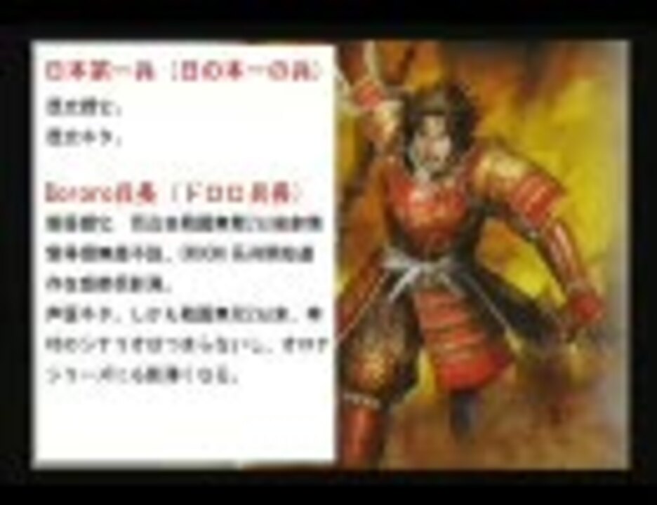 台湾のプレイヤーLandiusです。これは台湾のキャラあだ名つけの整理したものです。今回は戦国の前篇。BGMは「無双オロチ」のモード選択、「戦国無双」の稲葉山城、「戦国無双2」の忠勝と「ガオガイガー」神話ver.。蜀→<a href="https://www.nicovideo.jp/watch/sm3831716" class="watch">sm3831716</a>、魏→<a href="https://www.nicovideo.jp/watch/sm3840223" class="watch">sm3840223</a>、呉→<a href="https://www.nicovideo.jp/watch/sm3850340" class="watch">sm3850340</a>、他→<a href="https://www.nicovideo.jp/watch/sm3861330" class="watch">sm3861330</a>、戦国後→<a href="https://www.nicovideo.jp/watch/sm3891639" class="watch">sm3891639</a>、団体とモブ→<a href="https://www.nicovideo.jp/watch/sm3914367" class="watch">sm3914367</a>、補完篇→<a href="https://www.nicovideo.jp/watch/sm4611148" class="watch">sm4611148</a>