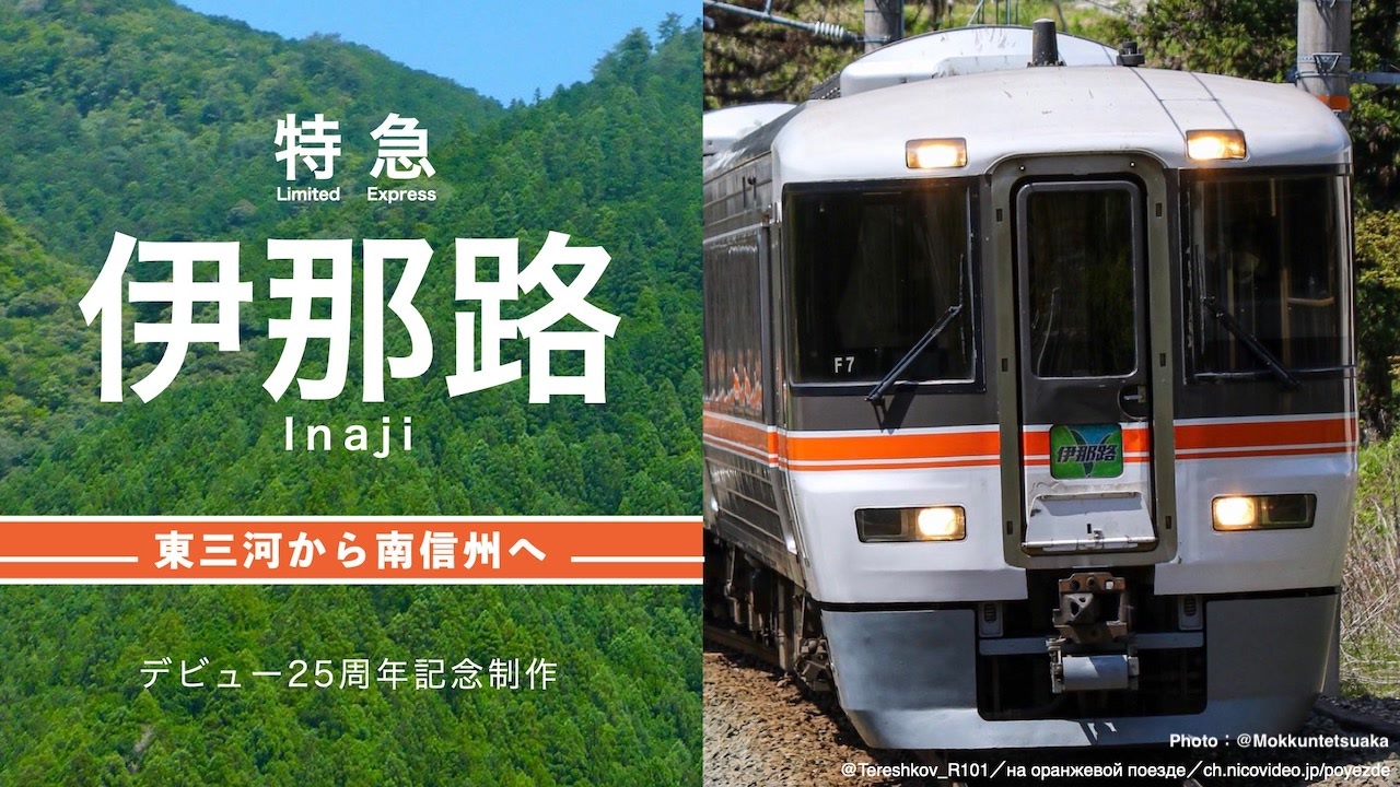 <i>「25年分のありがとうを込めて-。」</i><br><br>デビュー25周年を迎えた飯田線史上初の定期特急列車「伊那路号」。<br>東三河から北遠地方、そして南信州を結んできました。<br>さあ、あなたも伊那路号で飯田線の旅へ出掛けてみませんか?<br><span style="font-size: 10px;">※全編4K/24p撮影。全画面再生オススメ。</span><br><span style="color: #0000ff; font-size: 10px;"><strong>◆◆◆チャプター◆◆◆</strong></span><br><span style="font-size: 10px;"><a href="#" class="seekTime" data-seekTime="00:05" onclick="seekNicoPlayer('#00:05'); return false;">#00:05</a>…オープニング(テーマ曲:<a href="https://www.nicovideo.jp/watch/sm36220975" class="watch">sm36220975</a>)<br><a href="#" class="seekTime" data-seekTime="01:12" onclick="seekNicoPlayer('#01:12'); return false;">#01:12</a>…豊橋駅<br><a href="#" class="seekTime" data-seekTime="06:08" onclick="seekNicoPlayer('#06:08'); return false;">#06:08</a>…豊川駅<br><a href="#" class="seekTime" data-seekTime="08:08" onclick="seekNicoPlayer('#08:08'); return false;">#08:08</a>…新城駅<br><a href="#" class="seekTime" data-seekTime="10:23" onclick="seekNicoPlayer('#10:23'); return false;">#10:23</a>…本長篠駅<br><a href="#" class="seekTime" data-seekTime="12:01" onclick="seekNicoPlayer('#12:01'); return false;">#12:01</a>…湯谷温泉駅<br><a href="#" class="seekTime" data-seekTime="15:05" onclick="seekNicoPlayer('#15:05'); return false;">#15:05</a>…中部天竜駅<br><a href="#" class="seekTime" data-seekTime="17:56" onclick="seekNicoPlayer('#17:56'); return false;">#17:56</a>…水窪駅<br><a href="#" class="seekTime" data-seekTime="20:36" onclick="seekNicoPlayer('#20:36'); return false;">#20:36</a>…平岡駅<br><a href="#" class="seekTime" data-seekTime="22:29" onclick="seekNicoPlayer('#22:29'); return false;">#22:29</a>…温田駅<br><a href="#" class="seekTime" data-seekTime="24:05" onclick="seekNicoPlayer('#24:05'); return false;">#24:05</a>…天竜峡駅<br><a href="#" class="seekTime" data-seekTime="26:38" onclick="seekNicoPlayer('#26:38'); return false;">#26:38</a>…飯田駅<br><a href="#" class="seekTime" data-seekTime="27:11" onclick="seekNicoPlayer('#27:11'); return false;">#27:11</a>…エンディング(テーマ曲:<a href="https://www.nicovideo.jp/watch/sm38334283" class="watch">sm38334283</a>)<br>—————</span><br><span style="color: #ff00ff; font-size: 10px;"><strong>【Instagram版】</strong></span><span style="font-size: 10px;"><strong><a href="https://www.instagram.com/tv/CPAba8Rn7l0" target="_blank" rel="noopener nofollow">https://www.instagram.com/tv/CPAba8Rn7l0</a></strong></span><br><span style="font-size: 10px;">—————</span><br><strong>2022年5月29日(日)のオススメ動画としてニコニコトップページ(ニコニコビジョン)で紹介されました。ありがとうございます!<br><a href="https://twitter.com/nico_nico_info/status/1530791547226267648" target="_blank" rel="noopener nofollow">https://twitter.com/nico_nico_info/status/1530791547226267648</a></strong>