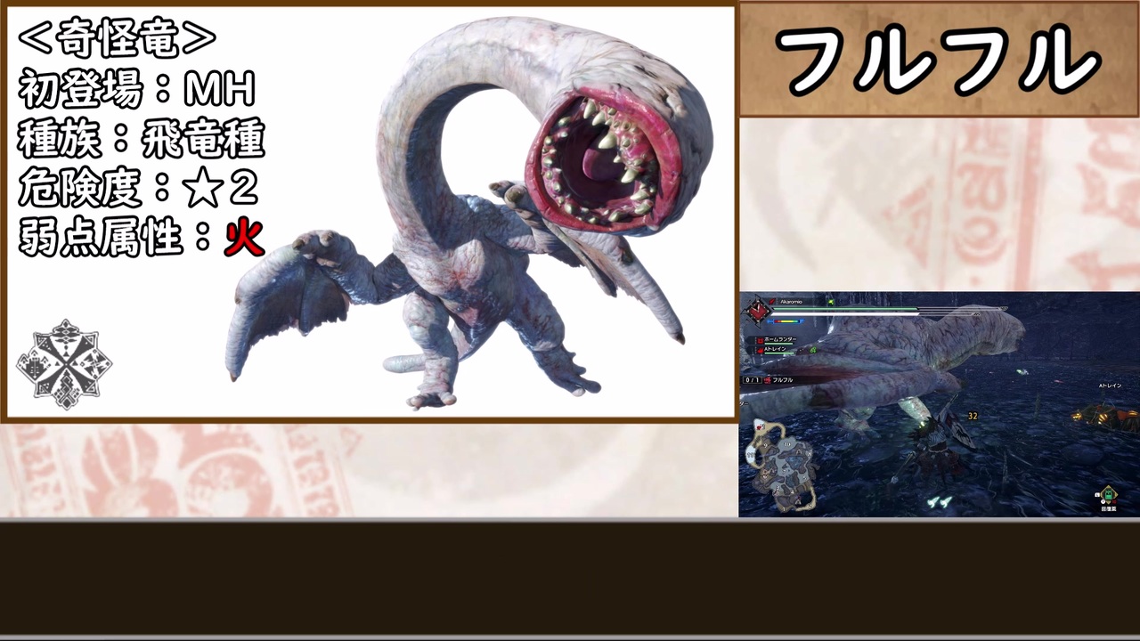 やっと「奇怪竜」という別名をもらえてよかったね。<br><br>おもしろければ「マイリスト登録」と「いいね」ボタンを押してください。<br>モチベーションがあがります。<br><br><a href="https://www.nicovideo.jp/watch/sm38665701" class="watch">sm38665701</a>←前次→<a href="https://www.nicovideo.jp/watch/sm38928477" class="watch">sm38928477</a> <br><br>Twitter→<a href="https://twitter.com/akaromio" target="_blank" rel="noopener nofollow">https://twitter.com/akaromio</a><br><br>youtube版→<a href="https://www.youtube.com/channel/UCtFhlThuS8r2uxkJBddAY1w" target="_blank" rel="noopener nofollow">https://www.youtube.com/channel/UCtFhlThuS8r2uxkJBddAY1w</a><br><br>マイリスト→<a href="https://www.nicovideo.jp/mylist/70962035" target="_blank" rel="noopener">mylist/70962035</a><br>前シリーズ→<a href="https://www.nicovideo.jp/mylist/69407997" target="_blank" rel="noopener">mylist/69407997</a><br>他のゆっくり実況→<a href="https://www.nicovideo.jp/mylist/35671399" target="_blank" rel="noopener">mylist/35671399</a><br>モンハン解説→<a href="https://www.nicovideo.jp/mylist/38484481" target="_blank" rel="noopener">mylist/38484481</a>