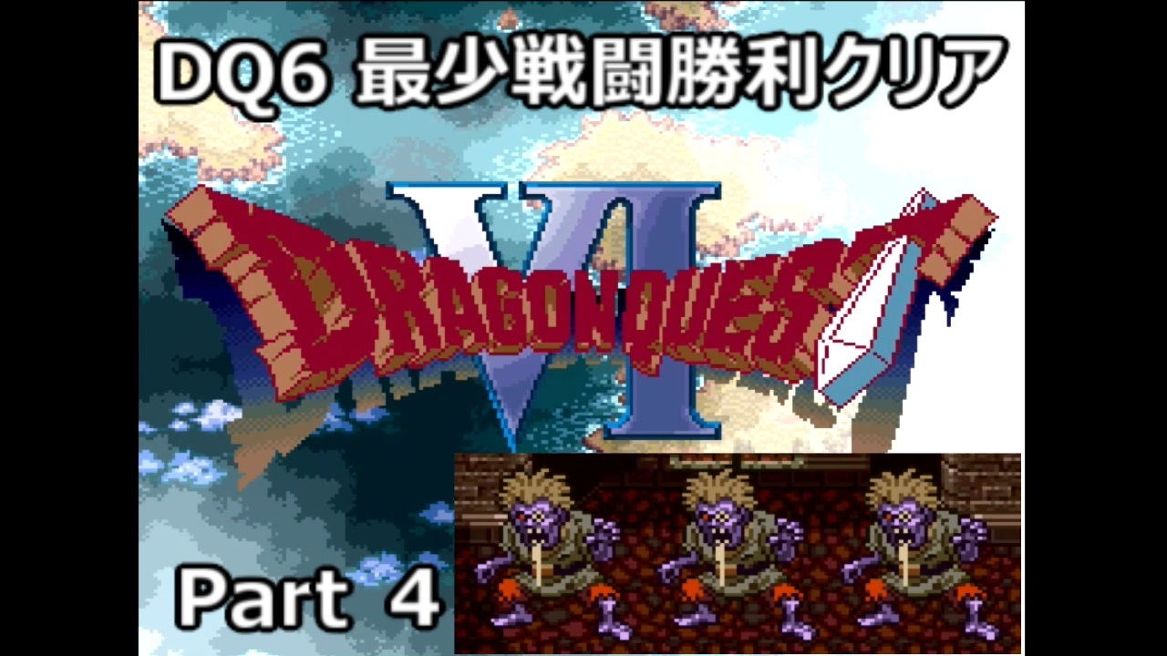 近所のサウナが土日休業なので、予定を早めて初投稿です。<br><br>Part4、ポイズンゾンビ戦です。<br><br>ドラゴンクエスト6の縛りプレイです。<br>縛り内容は以下の通り。<br><br>プレイ条件<br>1. 最少戦闘勝利回数クリア(全38戦)<br>2. 必須戦闘での稼ぎなし(仲間呼びでの経験値稼ぎ)<br>3. ダーマ神殿の利用不可<br>4. 編集は頑張らない<br>(バグによる戦闘回避なし)<br>(道中戦闘はひたすら逃げてます)<br><br><a href="https://www.nicovideo.jp/watch/sm38761800" class="watch">sm38761800</a>←Part3|Part5→<a href="https://www.nicovideo.jp/watch/sm38796110" class="watch">sm38796110</a><br>Part1→<a href="https://www.nicovideo.jp/watch/sm38699804" class="watch">sm38699804</a><br><br>youtube→<a href="https://www.youtube.com/channel/UCXkpWUmmGrMigseRKwhvroA" target="_blank" rel="noopener nofollow">https://www.youtube.com/channel/UCXkpWUmmGrMigseRKwhvroA</a><br>twitter→<a href="https://twitter.com/Hakusai_kkmsn" target="_blank" rel="noopener nofollow">https://twitter.com/Hakusai_kkmsn</a><br><br>この動画で利用している株式会社スクウェア・エニックスを代表とする共同著作者が権利を所有する著作物及びスギヤマ工房有限会社が権利を所有する楽曲の転載・配布は禁止いたします。<br>© 1995 ARMOR PROJECT/BIRD STUDIO/HEART BEAT/SQUARE ENIX All Rights Reserved.<br>© SUGIYAMA KOBO
